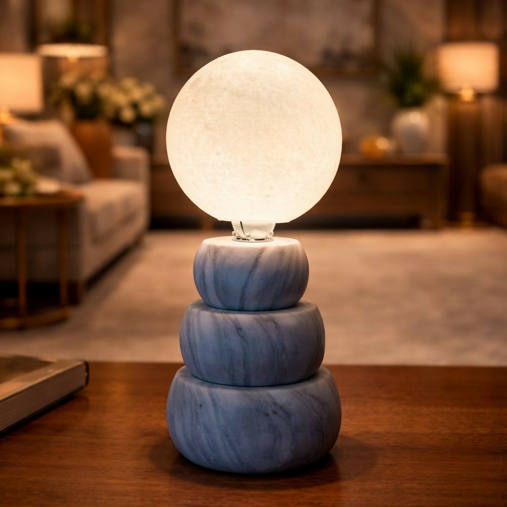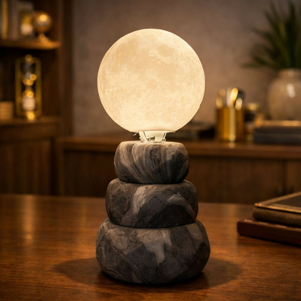 Enhance your space with this elegant moon light lamp featuring a realistic glowing moon design placed on a stylish stone-textured base. The soft warm LED light creates a calming and cozy atmosphere, making it perfect for bedrooms, living rooms, or bedside décor. Its modern and aesthetic design adds a premium touch to any interior while providing gentle illumination. Ideal for relaxation, ambient lighting, or gifting on special occasions.