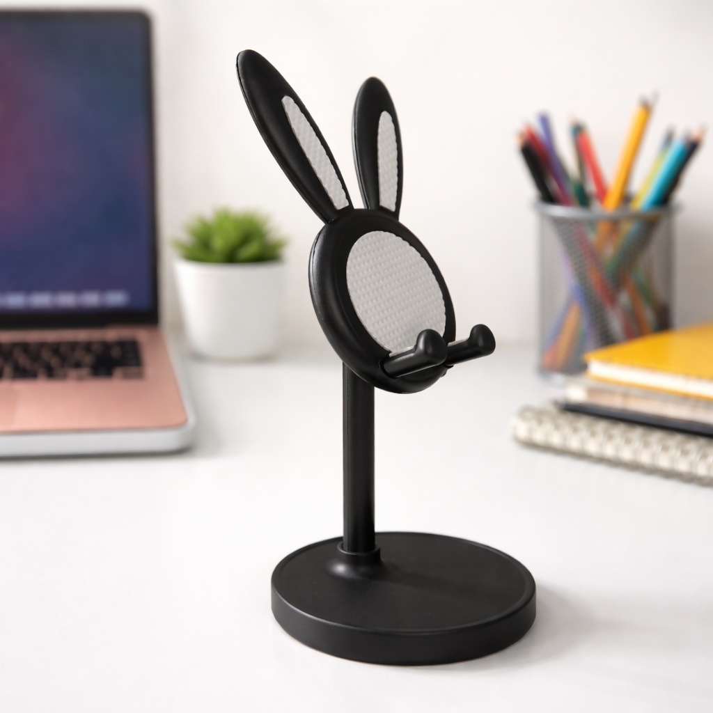 Keep your smartphone conveniently accessible with this stylish rabbit ear mobile phone stand. Designed for desks, study tables, and workstations, this sturdy stand securely holds your phone for video watching, video calls, online classes, and browsing. The anti-slip holder keeps the device stable while the elevated design provides comfortable viewing angles. Its compact and modern design makes it suitable for offices, study rooms, and bedside tables. Ideal for daily use and compatible with most smartphones.