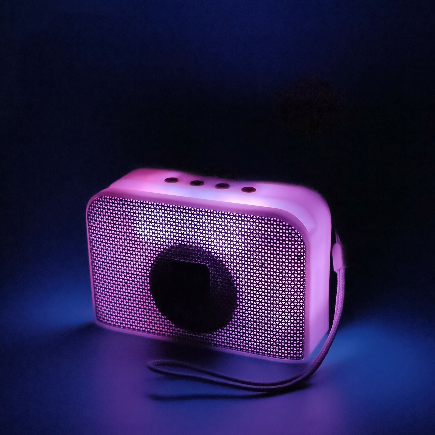 Upgrade your music experience with this stylish portable Bluetooth speaker featuring vibrant RGB lighting for a dynamic visual effect. Designed for both indoor and outdoor use, it delivers clear sound with enhanced bass for an immersive listening experience. The compact and lightweight design makes it easy to carry anywhere, while the built-in strap adds extra convenience for travel. With multiple connectivity options including Bluetooth, USB, TF card, FM radio, and AUX input, it offers versatile playback choices. Simple control buttons ensure effortless operation, making it perfect for everyday use. A great companion for parties, travel, or relaxing at home with music and ambient lighting.