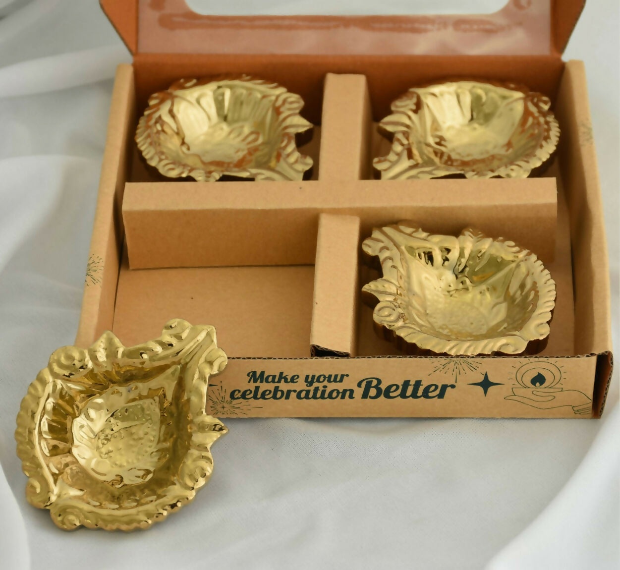 Decorative Ceramic Diya with Gold PVD Plating & Metallic Finish (4 Pc)