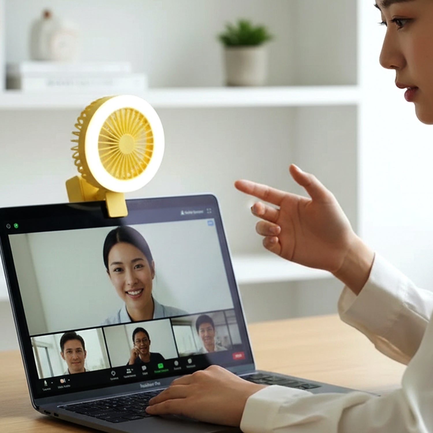 Its built-in battery design allows it to function as a USB rechargeable fan with consistent airflow. The integrated light makes it a practical LED table fan and personal cooling fan, serving as a compact mini portable fan for everyday comfort.