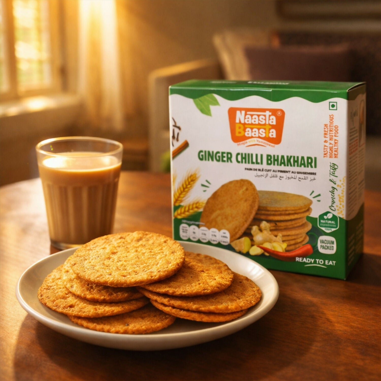 Naasta Baasta Ginger Chilli Bhakhari is a spicy & fresh ready to eat snack crafted for those who love bold flavors with a healthy twist