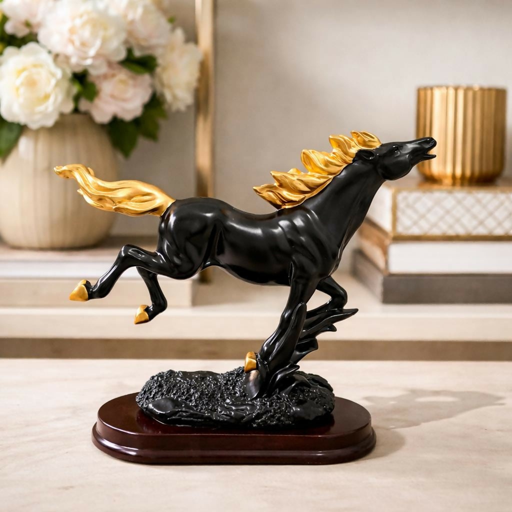 horse showpiece, running horse statue, decorative statue, tabletop decor, home decor item, office desk decor, animal figurine, luxury decor, shelf decor, artistic showpiece, gift item, modern decor
