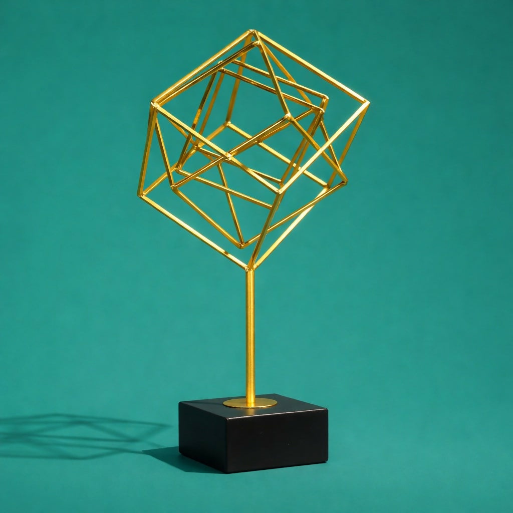 Geometric Metal Cube Sculpture Tabletop Decor Showpiece