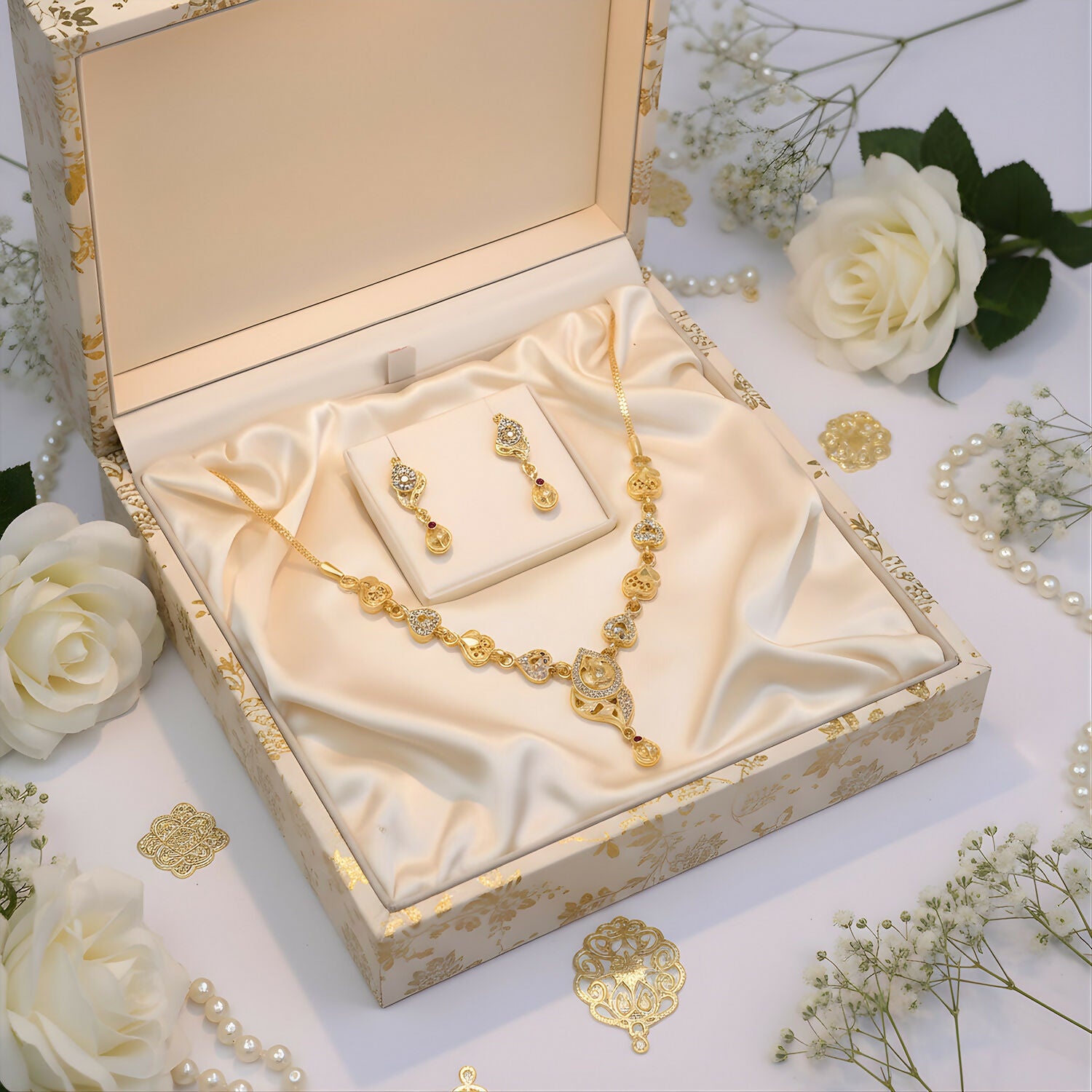 Enhance your style with this beautifully crafted artificial necklace set designed to bring elegance and charm to every occasion. Made with fine detailing and a premium finish, this necklace set offers the luxurious look of traditional jewellery while remaining lightweight and comfortable to wear. The intricate design and sparkling stones make it a perfect choice for weddings, festivals, parties, and special celebrations.