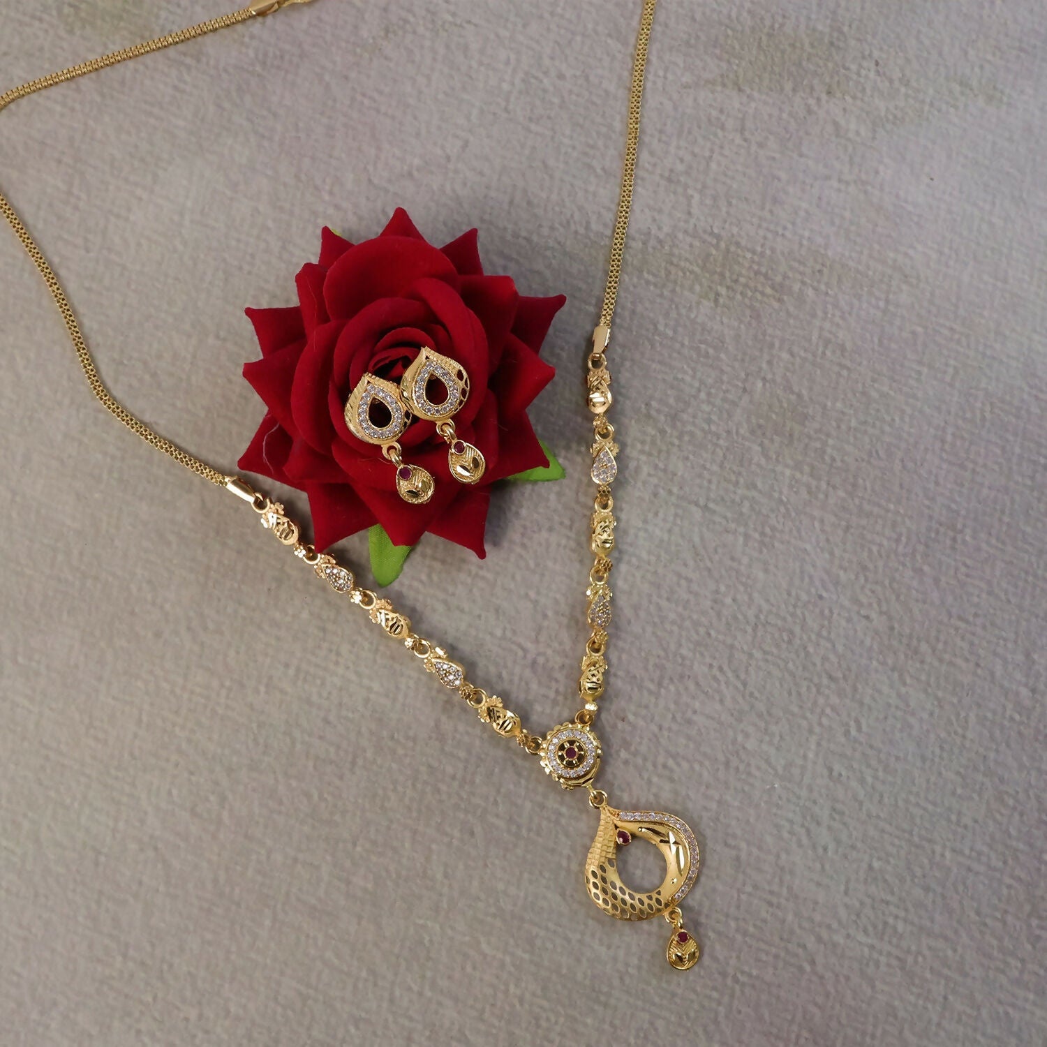 Elegant Gold-Tone Teardrop Pendant Necklace Set with Minimal Chain Design & Matching Earrings
