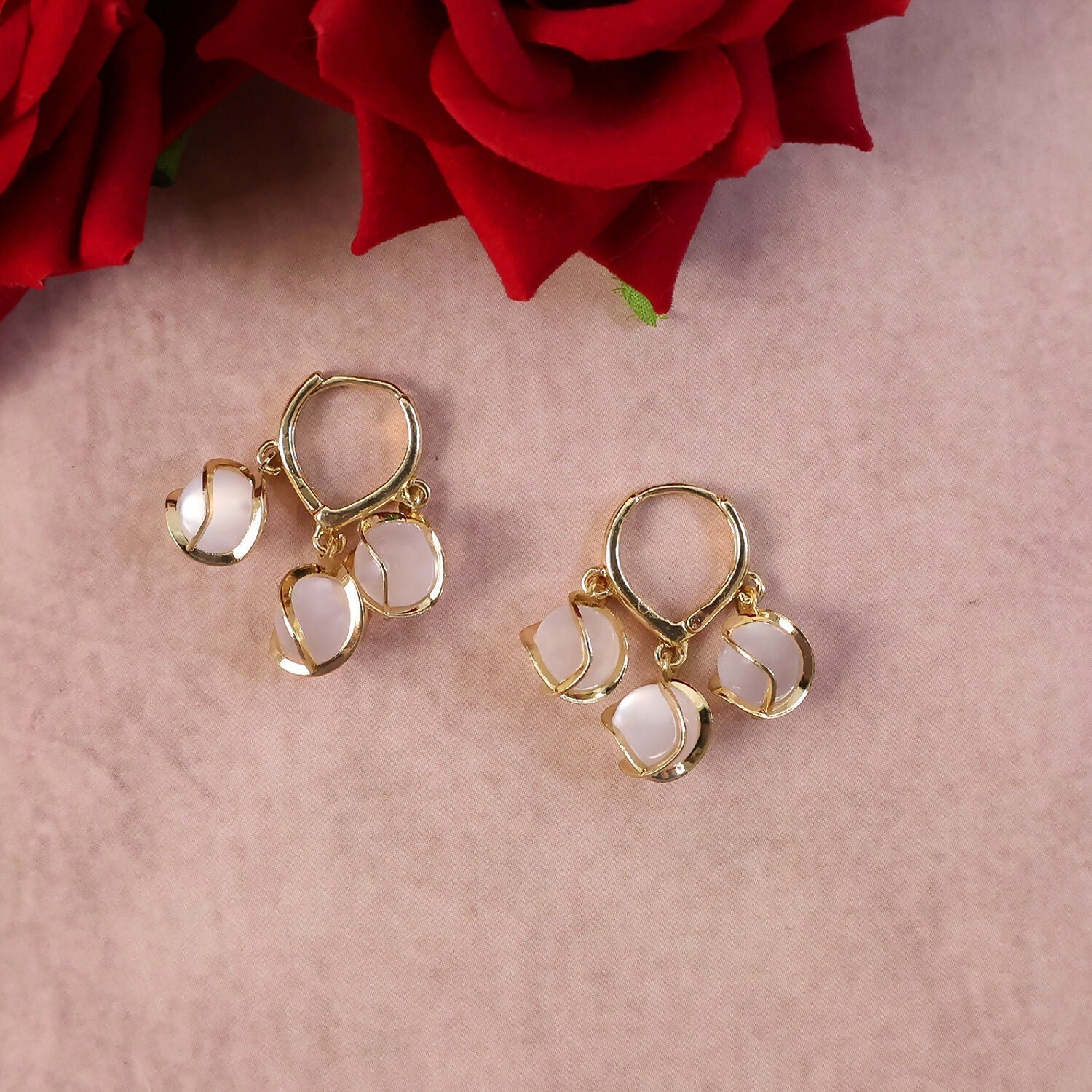 Design: Featuring a beautiful cluster of iridescent opal stones delicately suspended from a sleek gold-plated hoop. Their ethereal glow makes them stand out from traditional jewelry.