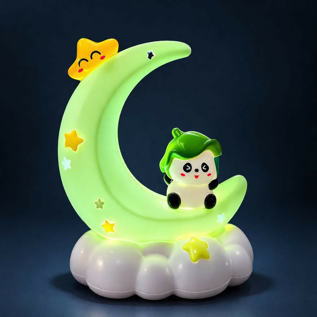 Cute Panda Moon Star Kids Night Lamp with Soft LED Bedside Light