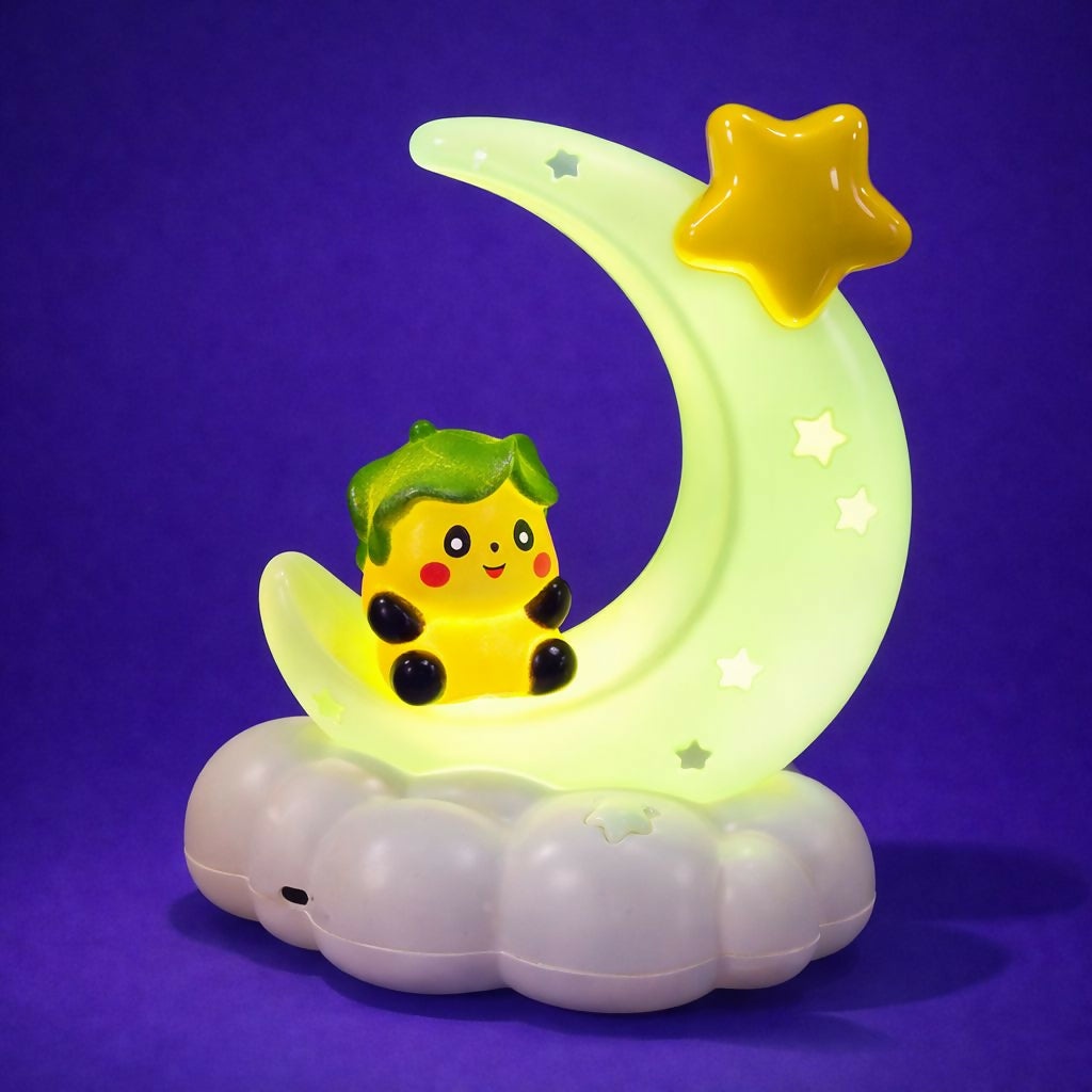 Create a cozy and magical bedtime atmosphere with this adorable moon and star kids night lamp. Featuring a cute character sitting on a glowing crescent moon with a smiling star, this decorative lamp provides a soft and calming LED light perfect for children’s bedrooms and nurseries. The gentle glow helps kids feel relaxed and comfortable at night while adding a charming decorative touch to bedside tables, study desks, or shelves. Its lightweight and compact design makes it ideal for bedrooms, playrooms, and baby rooms.