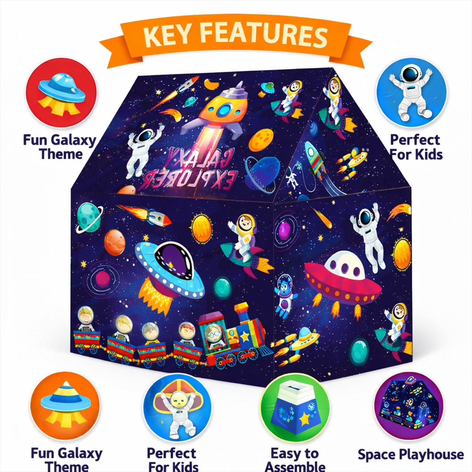 Galaxy Explorer Kids Play Tent House with Space Theme Indoor & Outdoor Foldable Playhouse Tent for Children