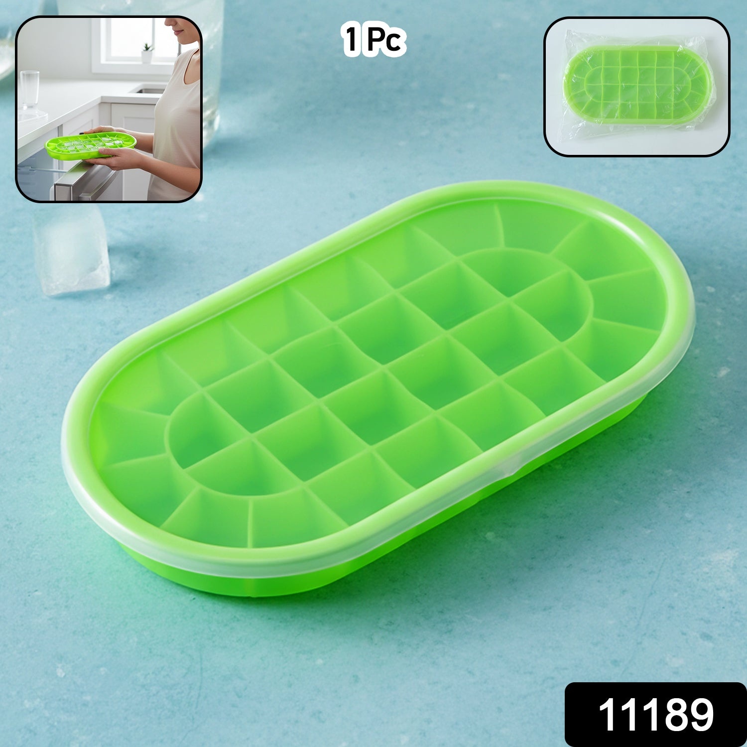 Premium Oval Silicone Ice Cube Tray with Lid (1 Pc)