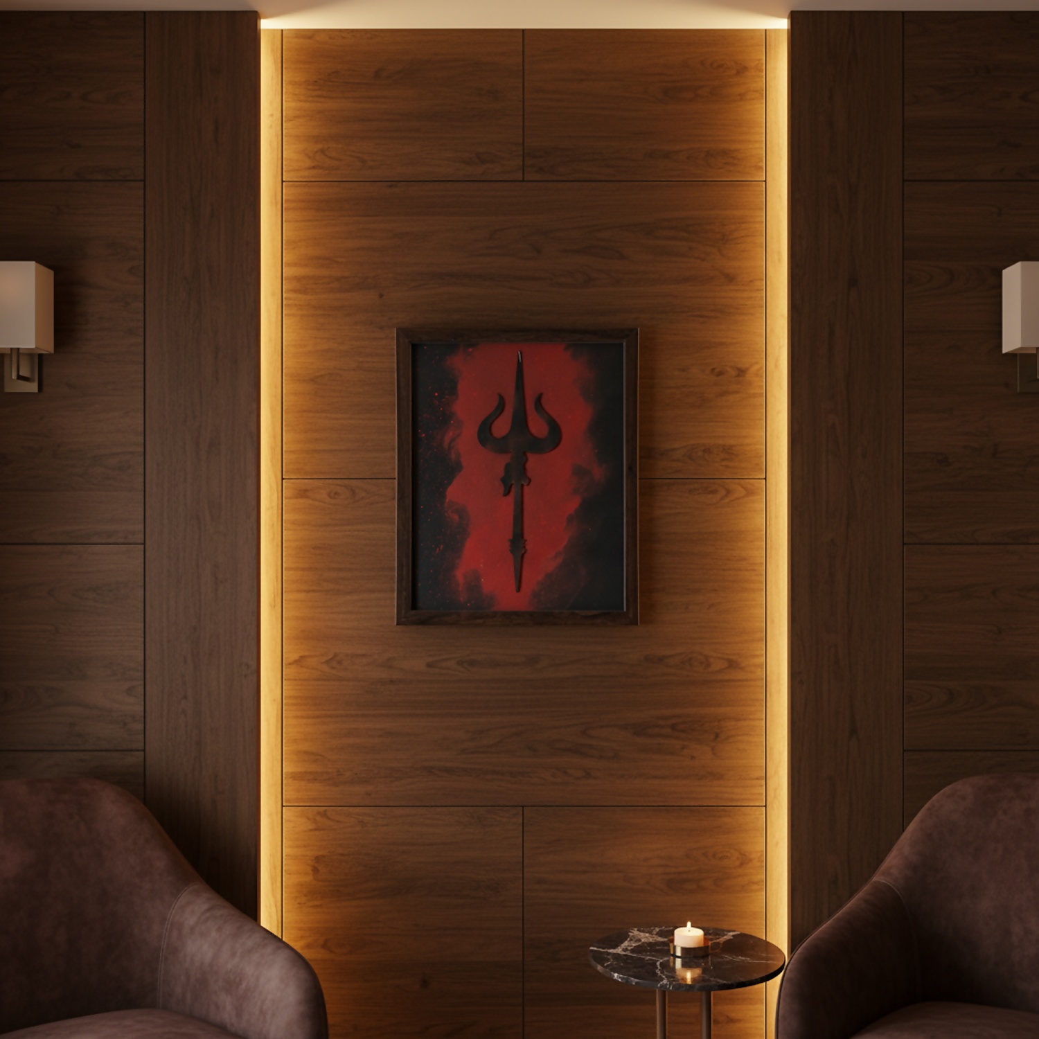 Mahadev Trishul Wall Art Frame – Minimalist Lord Shiva Trident Decor | Modern Spiritual Wall Art for Living Room, Meditation & Pooja Room