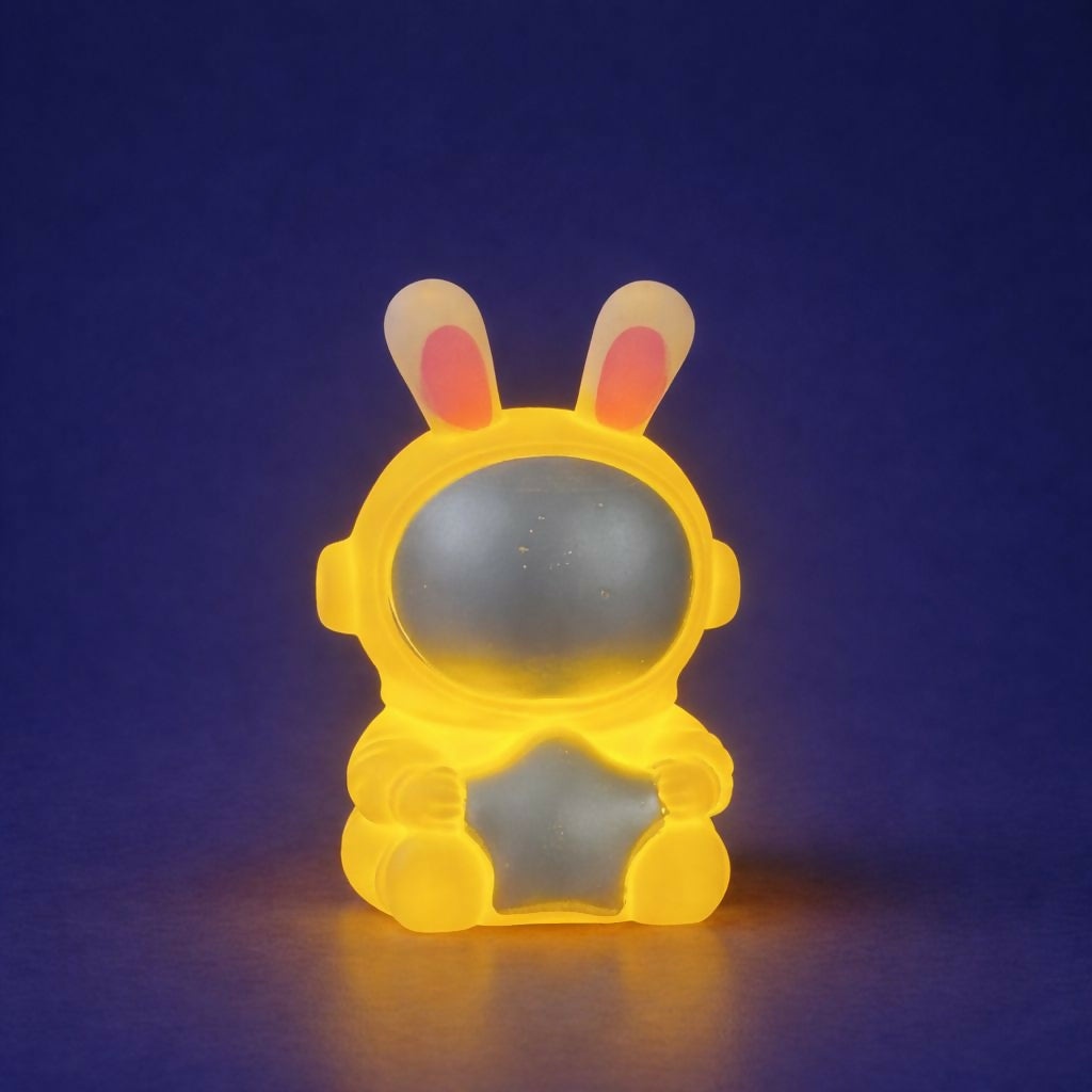 Add a soft and adorable glow to your space with this cute bunny astronaut LED night lamp. Designed with a charming astronaut character wearing bunny ears and holding a star, this lamp creates a warm and calming light perfect for kids’ bedrooms, study tables, or bedside decor. The compact and lightweight design makes it easy to place on desks, shelves, or nightstands. Its soft ambient glow helps create a cozy atmosphere, making it ideal as a night light for children or a decorative lamp for home and office spaces. This cute lamp also makes a wonderful gift for kids, birthdays, and special occasions.