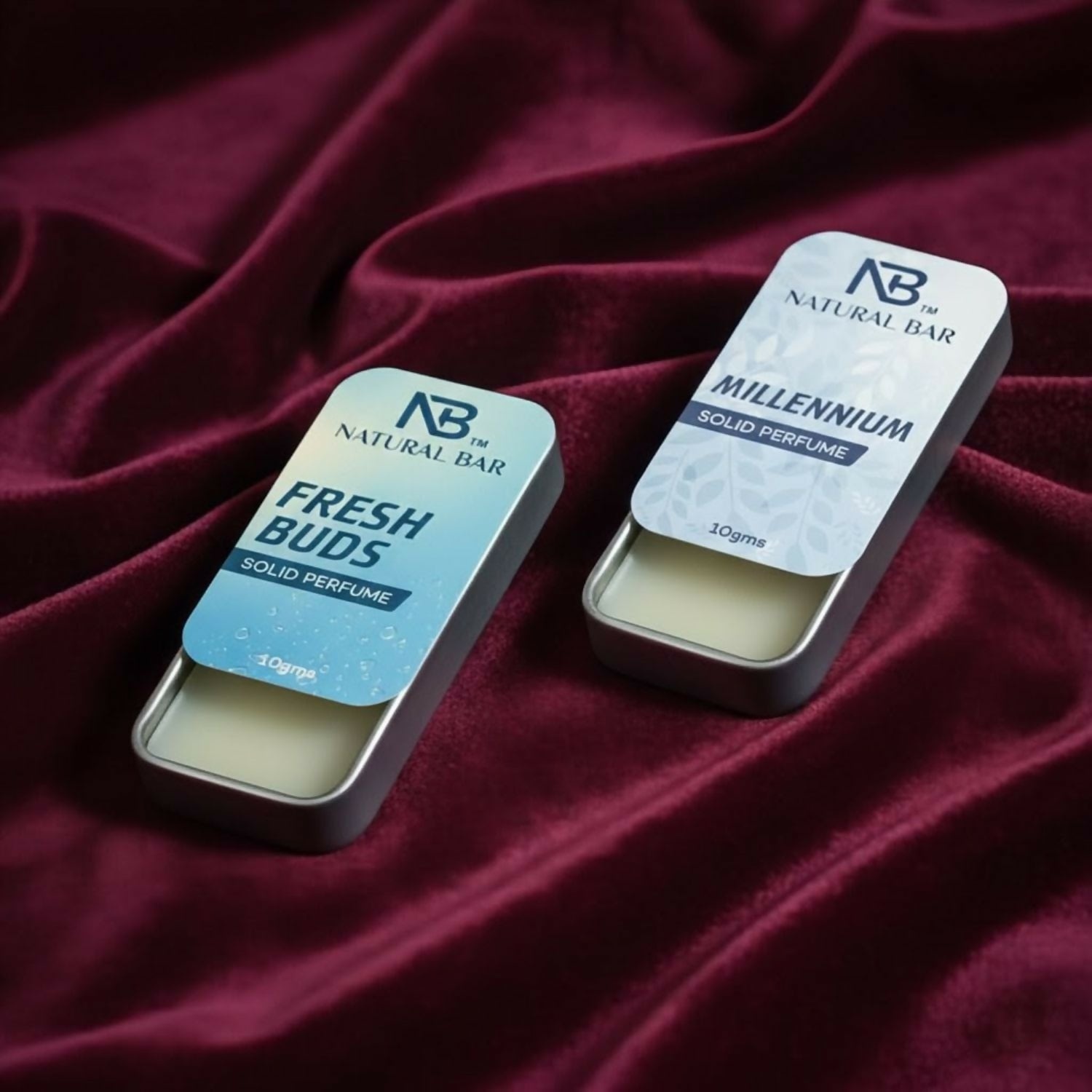 Natural Bar Millennium And fresh buds solid perfume combo| Alcohol Free Cologne for Men & Women | Strong & Lasting Fragrance | Gifting Set for Him & Her