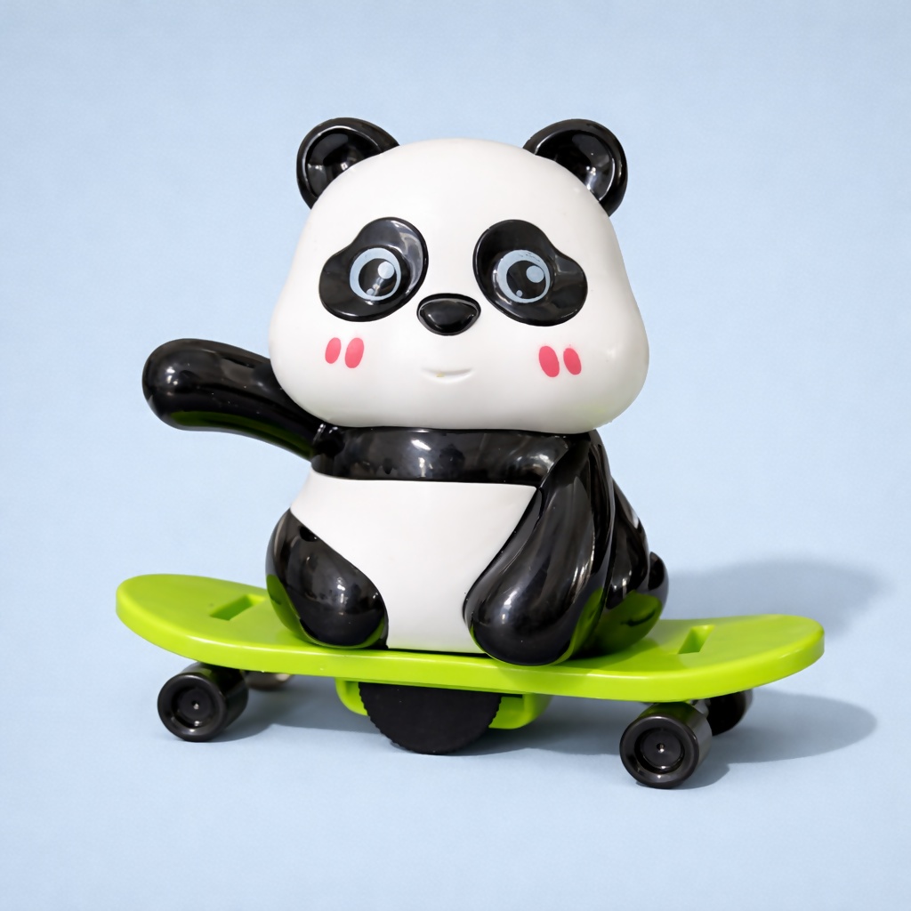 Wind-Up Panda Skateboard Toy for Kids with Moving Wheels