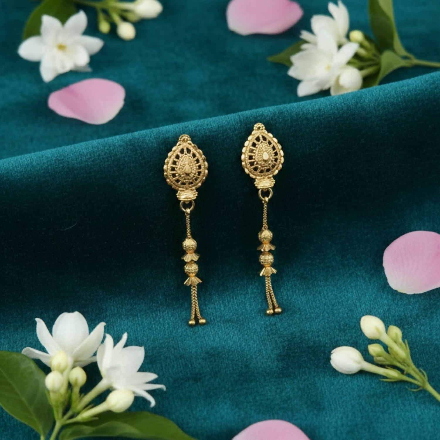 Elevate your ethnic wardrobe with these exquisitely crafted Gold-Plated Jhumka Earrings, featuring intricate filigree work and a classic bell-shaped drop. The ornate circular studs are accented with vibrant green and blue enamel touches, adding a regal pop of color to the traditional design. Finished with delicate golden beads that offer a graceful sway, these lightweight yet stunning earrings are the perfect statement piece for weddings, festivals, and special celebrations.