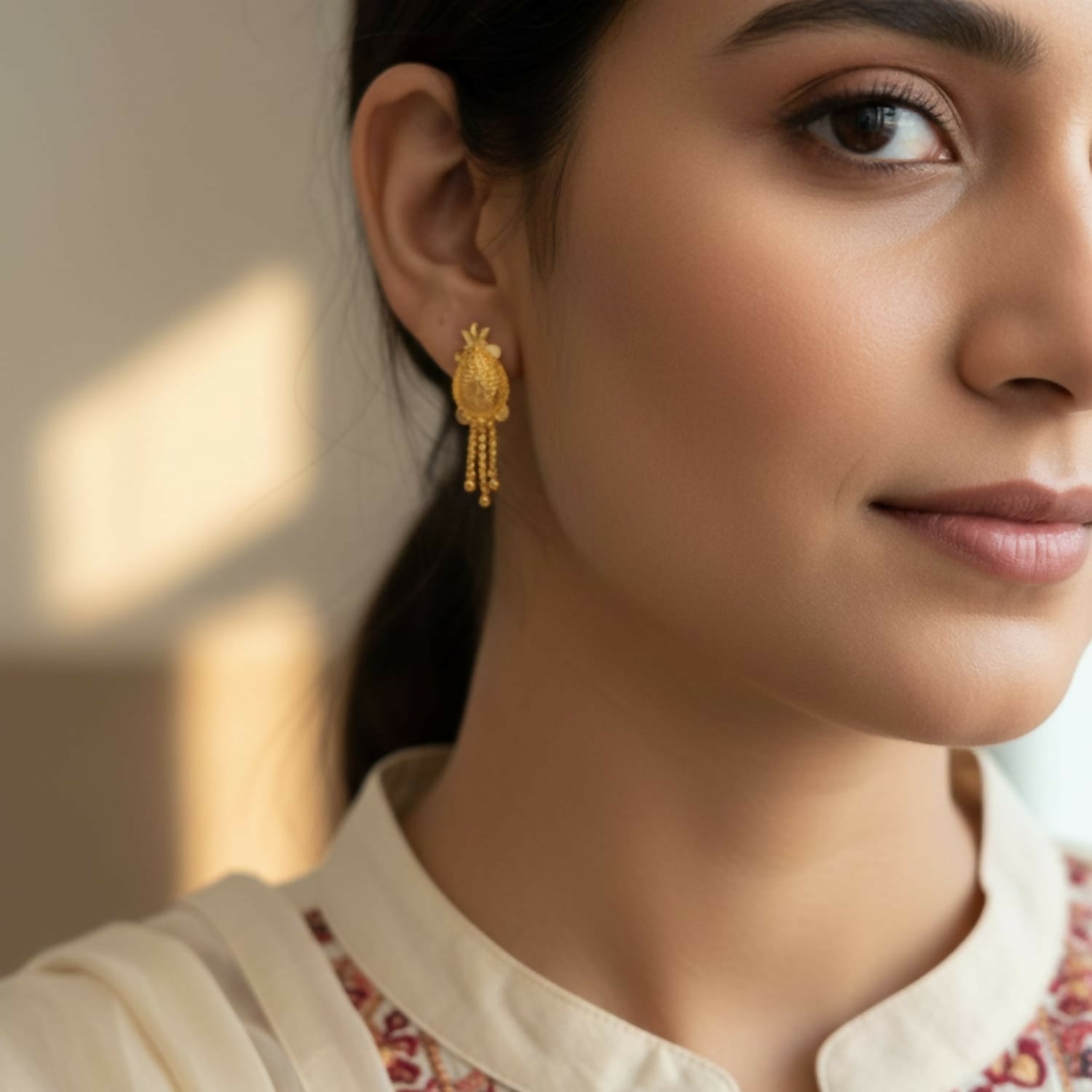 Nice 3 Line Golden Earrings for Women & Girls – Traditional Fancy Jewellery Gift