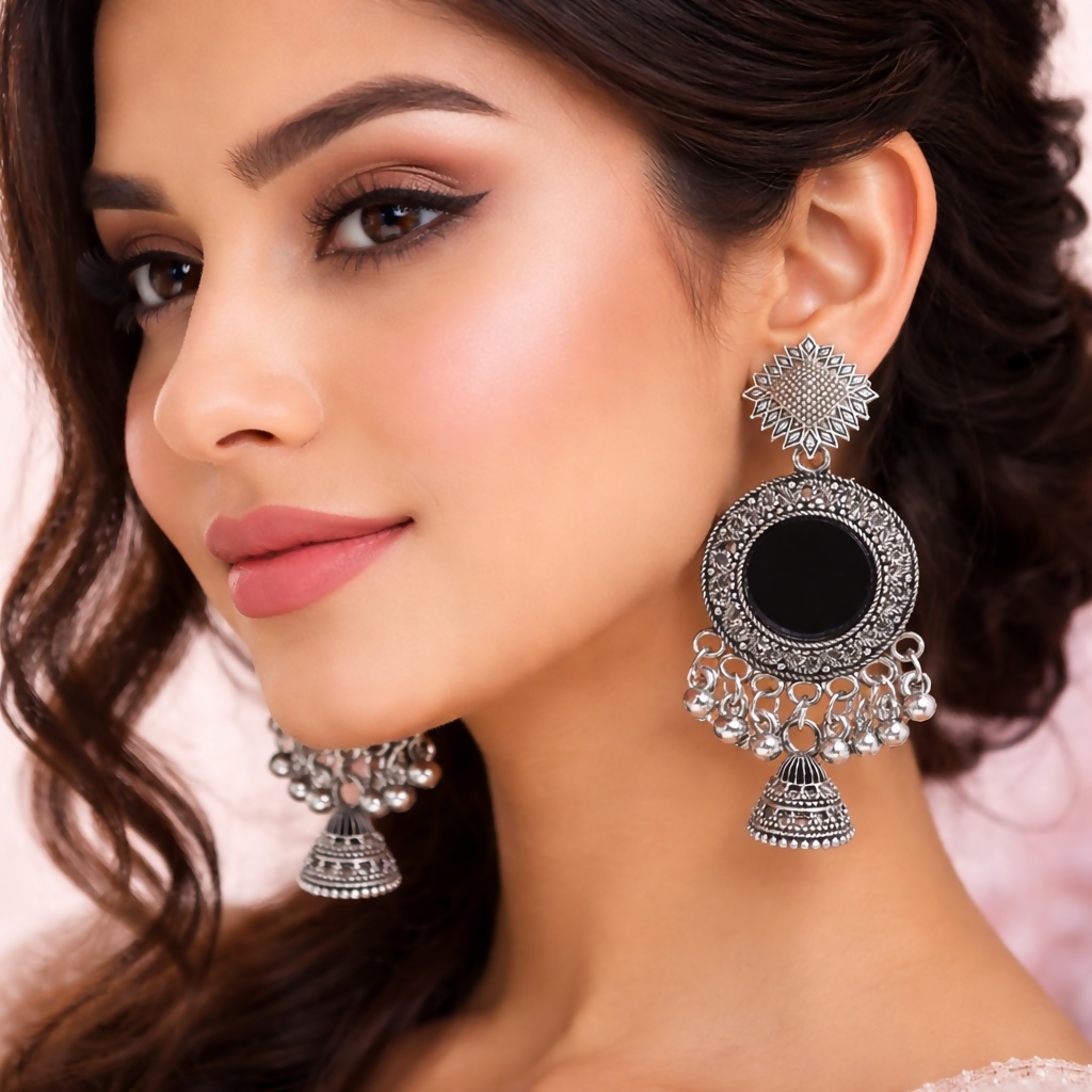 ELEGANT OXIDISED MIRROR JHUMKA EARRINGS