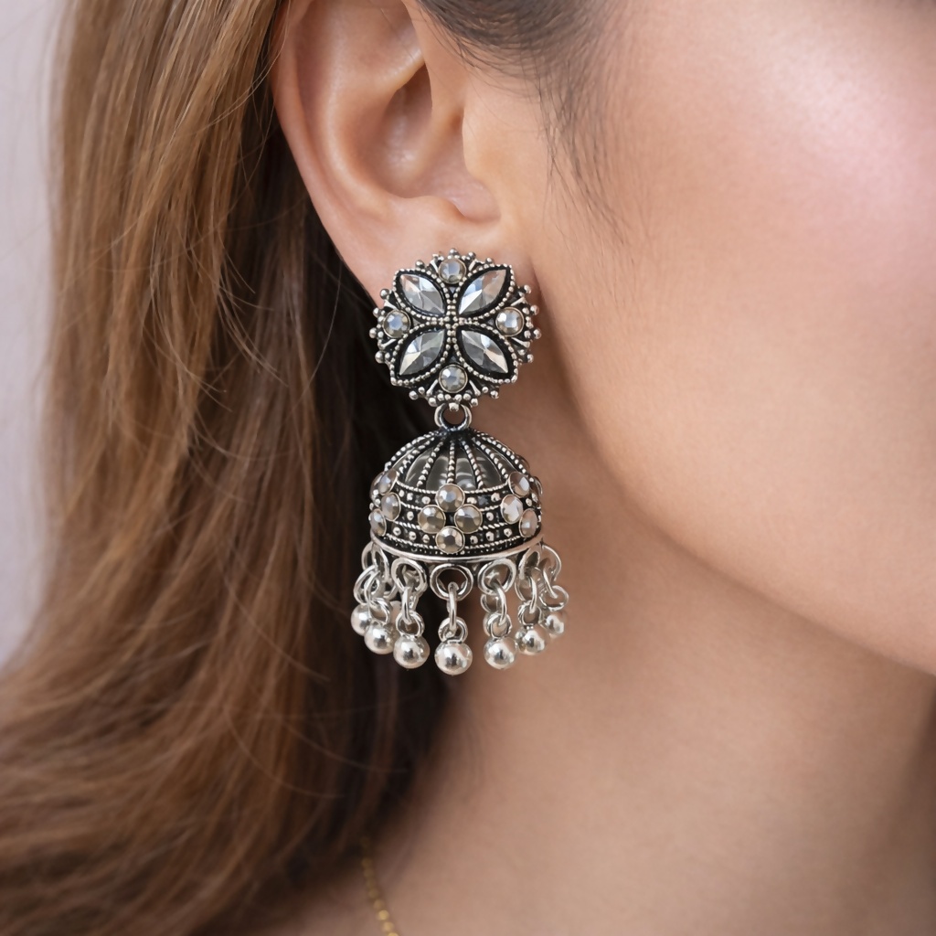 ELEGANT TRADITIONAL SILVER OXIDISE JHUMKA EARRINGS
