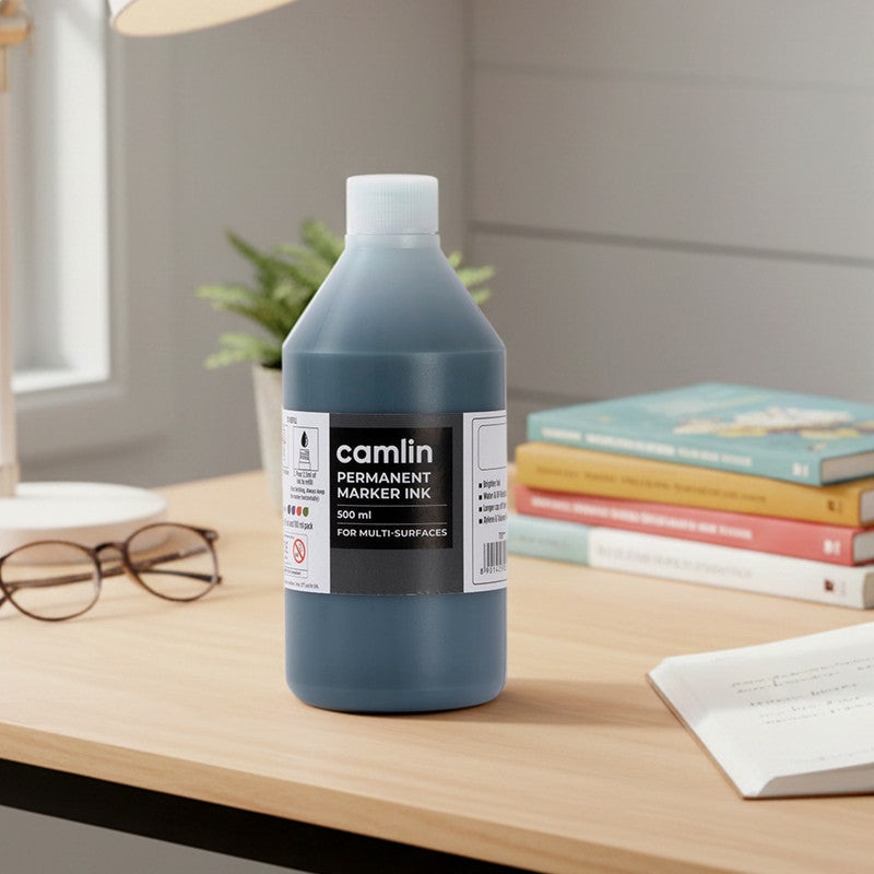 This Camlin Permanent Marker Ink in black provides bold, long-lasting marks on a wide range of surfaces including paper, plastic, cardboard, metal, and wood. Its smooth-flowing, quick-drying formula ensures clean, clear strokes without fading, making it ideal for heavy-duty writing, labeling, and industrial use. The 500 ml bottle offers a large refill capacity, and the included free dropper ensures spill-free, precise refilling of all permanent marker barrels. Perfect for offices, workshops, schools, and art studios, this ink delivers consistent performance while helping extend the life of your markers.
