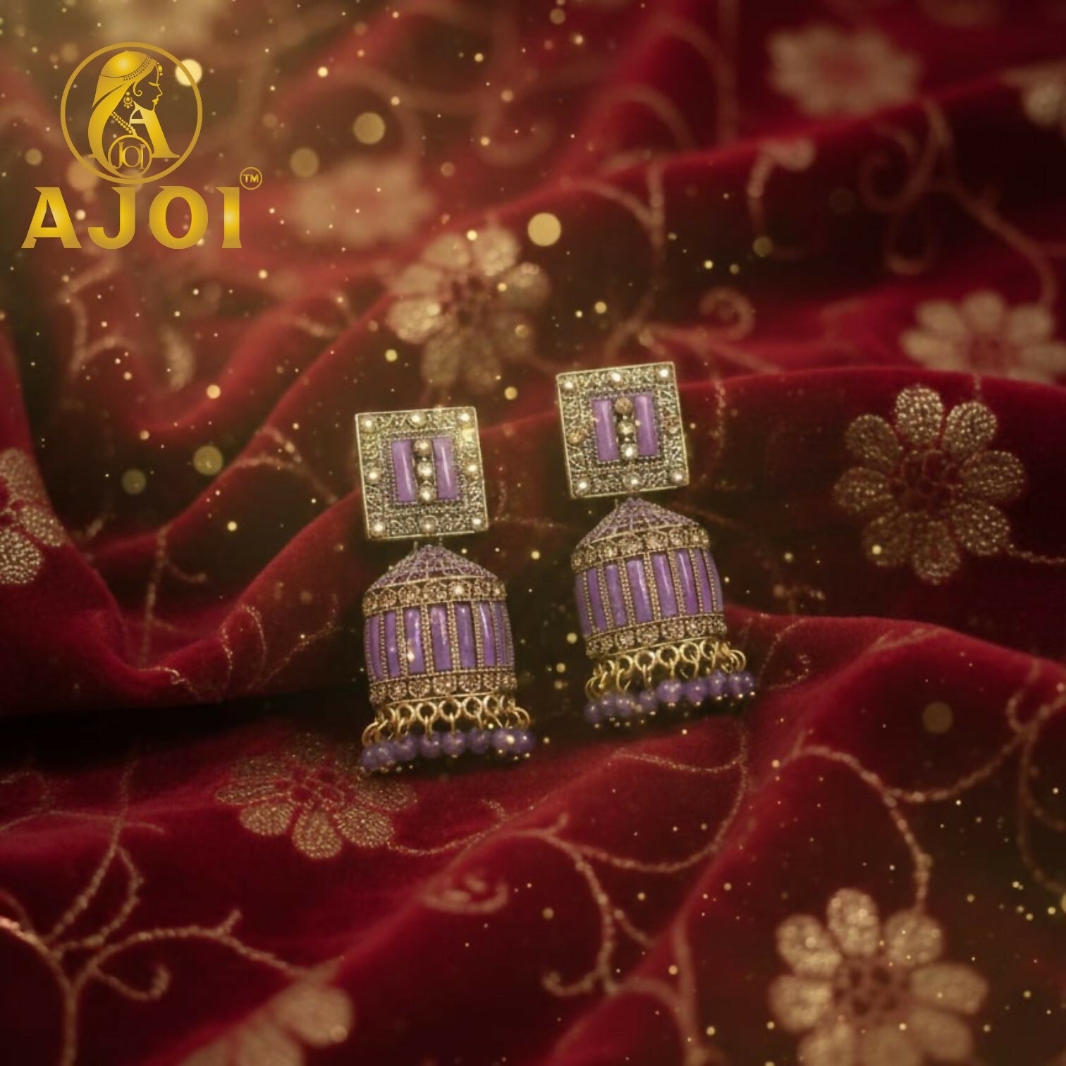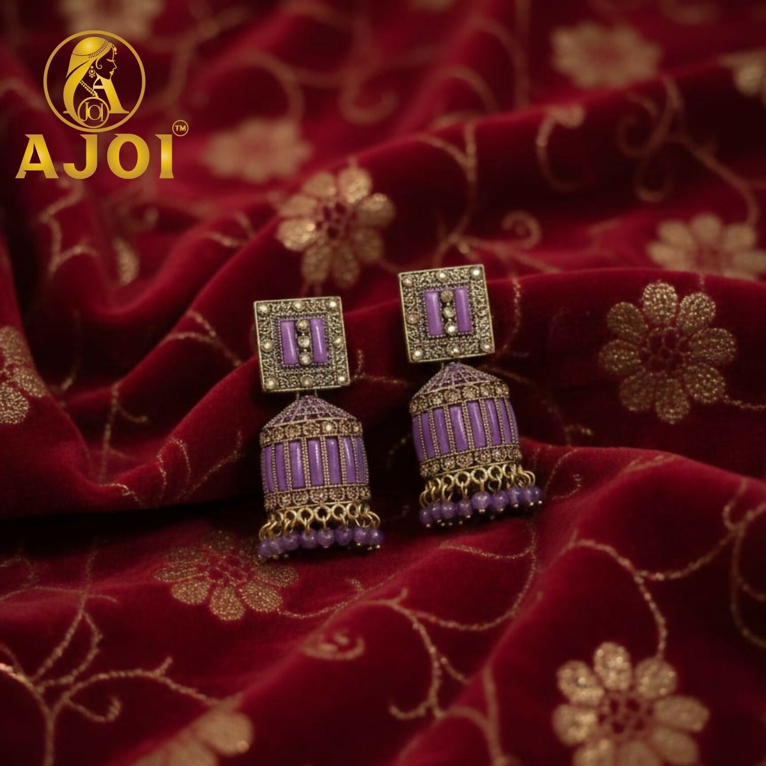 Step into elegance with these premium lavender purple designer jhumka earrings. Featuring intricate gold detailing, shimmering stones, and soft purple accents, this exquisite pair adds a graceful and luxurious charm to your festive and wedding looks.