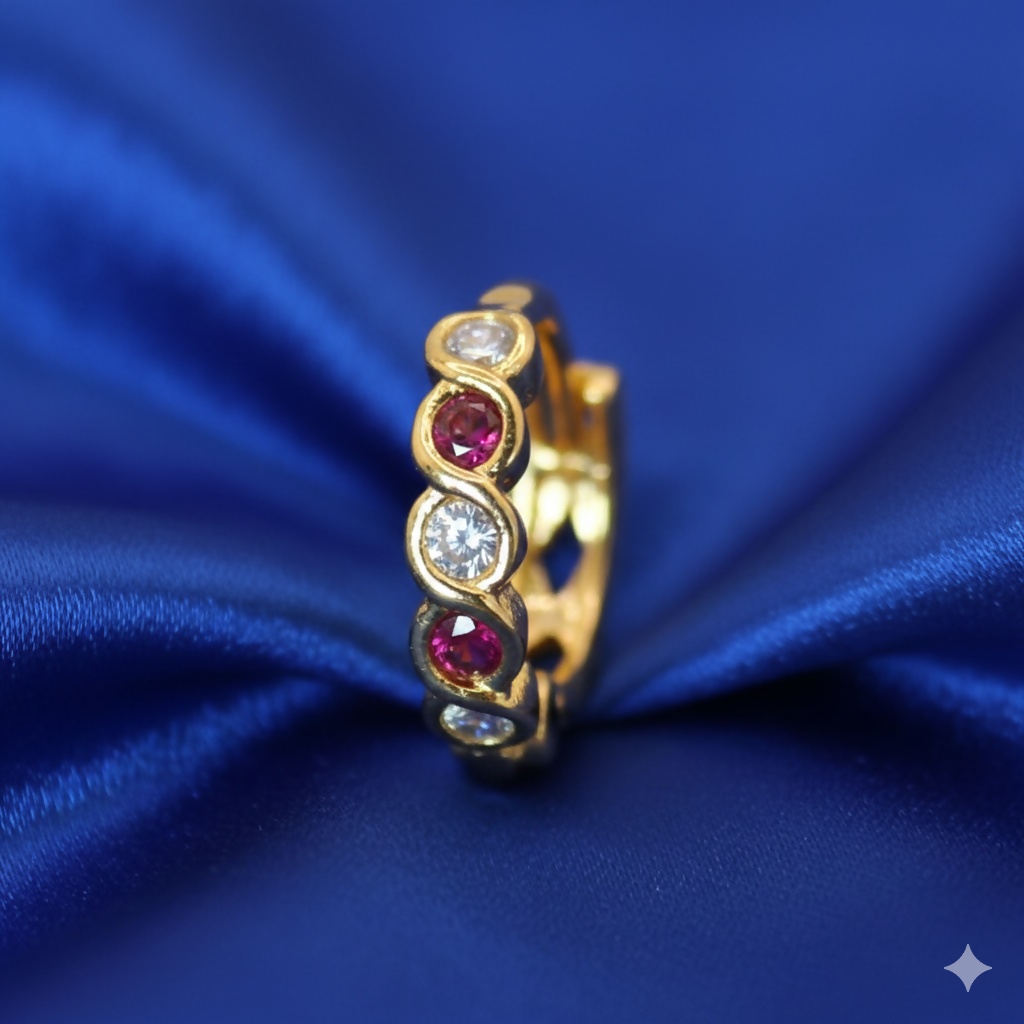 Gold Plated Ruby & AD Stones Nosepin Ring Hoop for women and girls