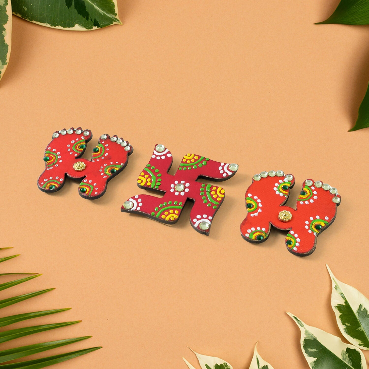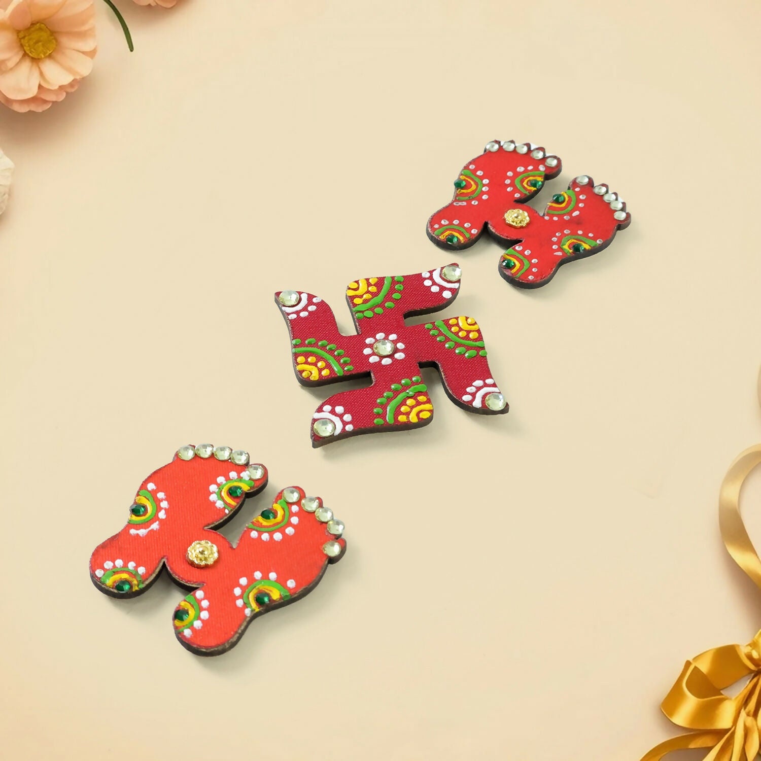 Hand Crafted Laxmi Charan & Swastik Set of 3