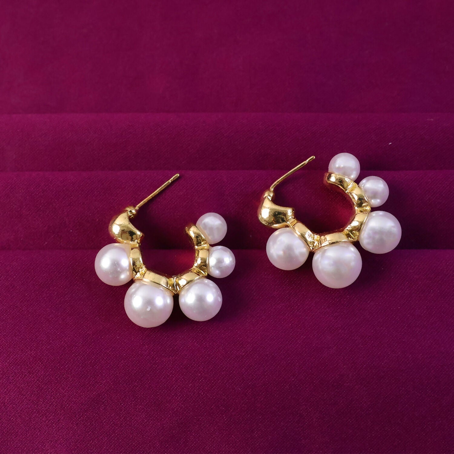 • Stylish Korean-inspired pearl hoop design • Premium gold-plated finish • Lightweight and comfortable for all-day wear • Skin-friendly and durable material • Suitable for party, wedding, festive & daily wear • Perfect gift option for girls and women