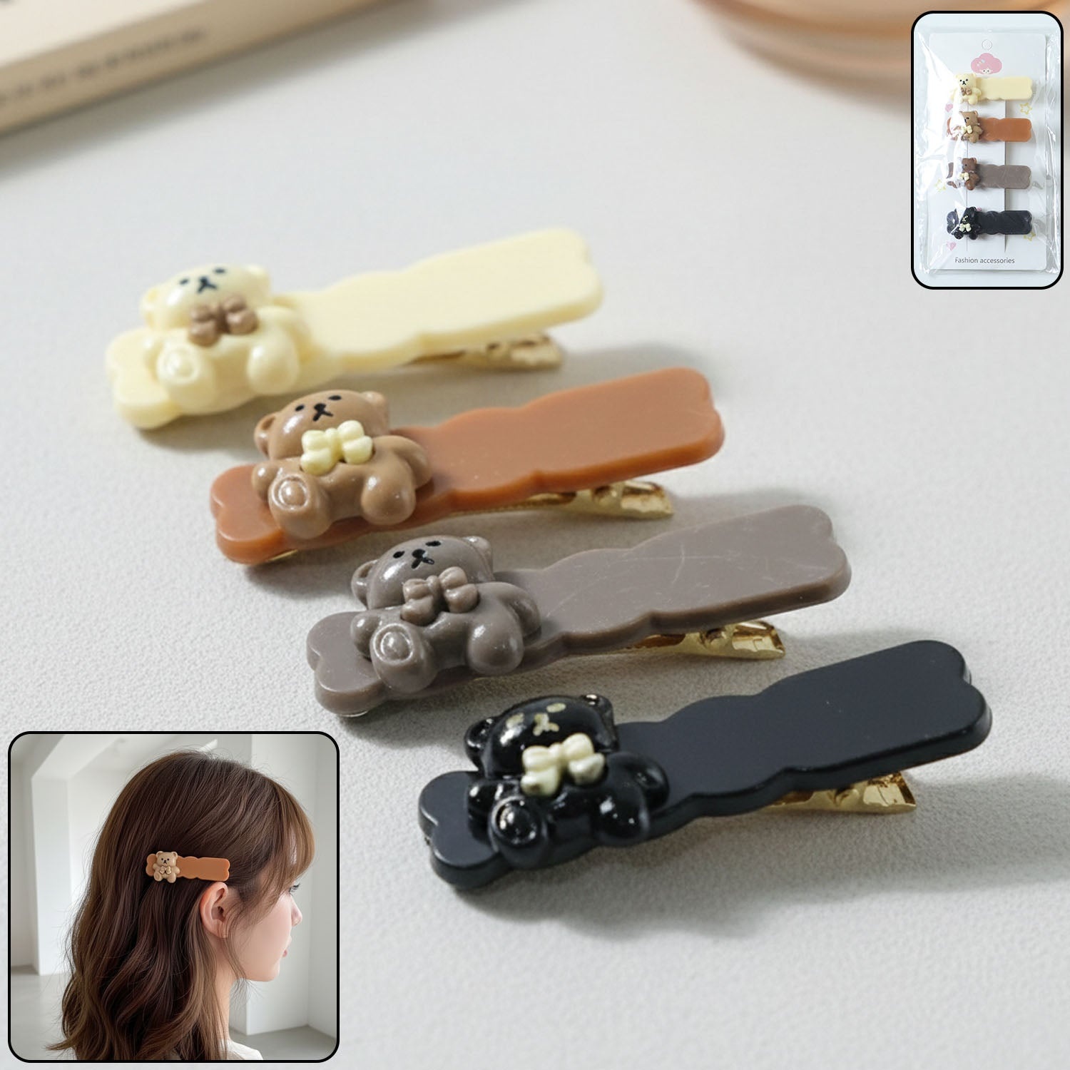 Cute Teddy Bear Decorative Snap Hair Clips Set for Girls – Stylish Long Hair Barrettes for Daily Wear, School, Office, Parties & Neat Hairstyling (4 Pc)
