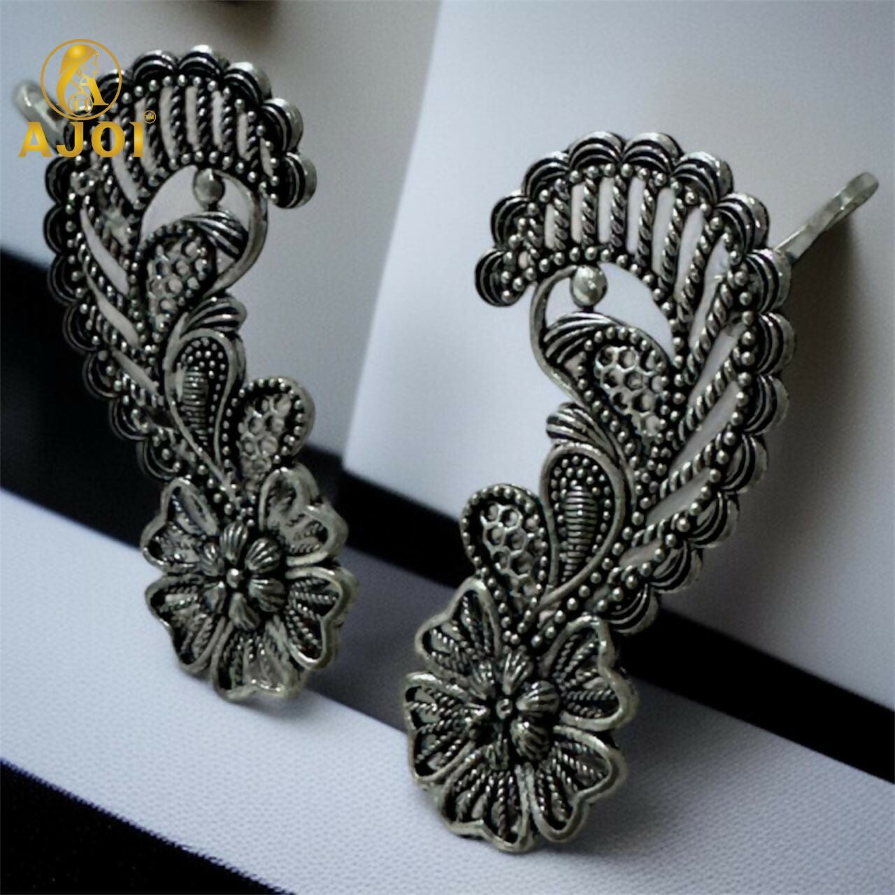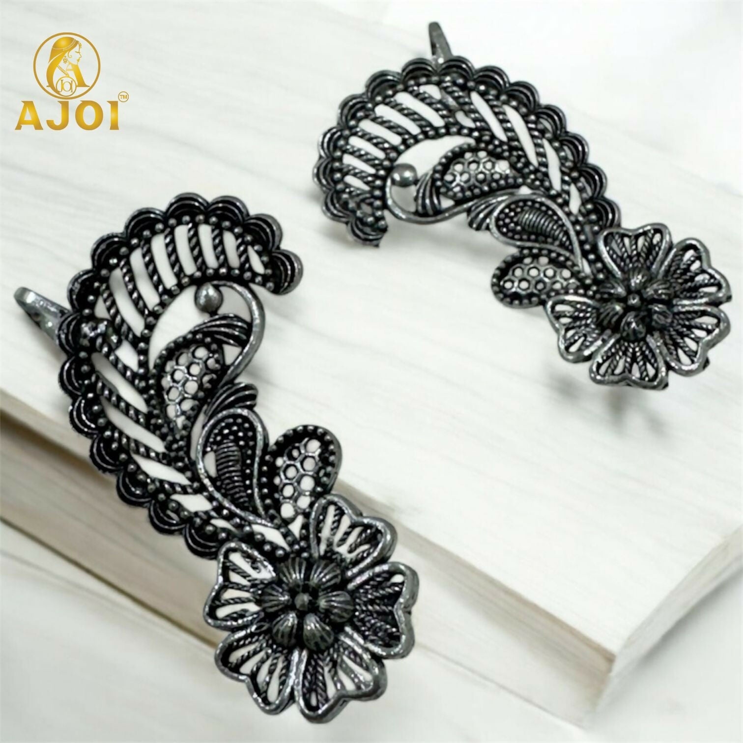 Add a touch of elegance to your ethnic and western outfits with these beautifully crafted Oxidised Silver Ear Cuff Earrings.