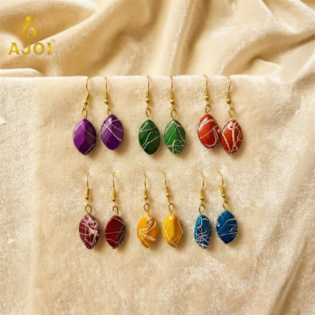 Add a touch of color and elegance to your everyday style with this beautiful Kati Earrings Pack of 6. Each pair features a unique marble-pattern stone drop, designed in vibrant shades like purple, green, red, yellow, and blue. The artistic white streak detailing gives every earring a handcrafted, premium look that stands out effortlessly.