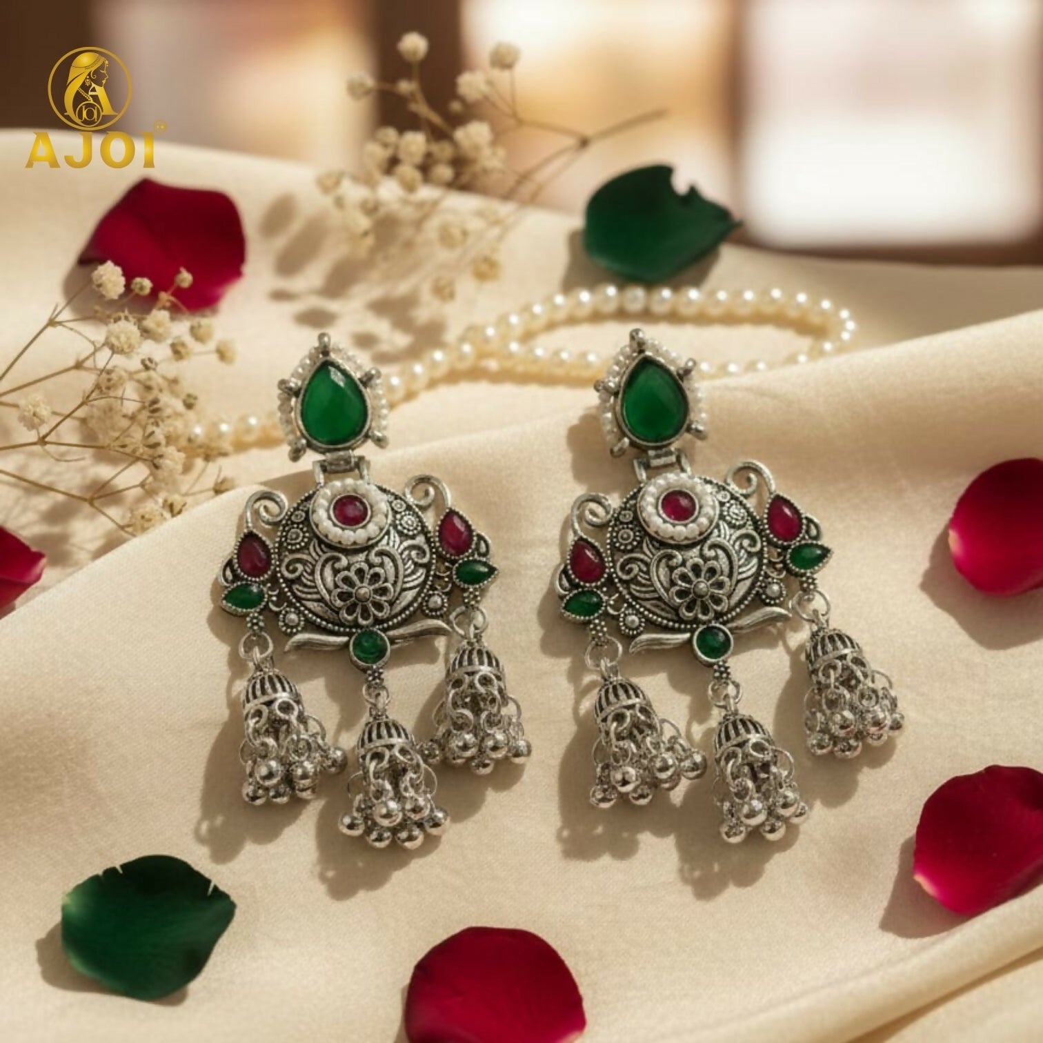 The oxidised finish gives a vintage royal look while remaining lightweight and comfortable for long wear. These earrings are perfect for weddings, festive celebrations, parties, cultural events, Navratri, Diwali, and family functions. They pair beautifully with sarees, lehengas, kurtis, and Indo-western outfits.