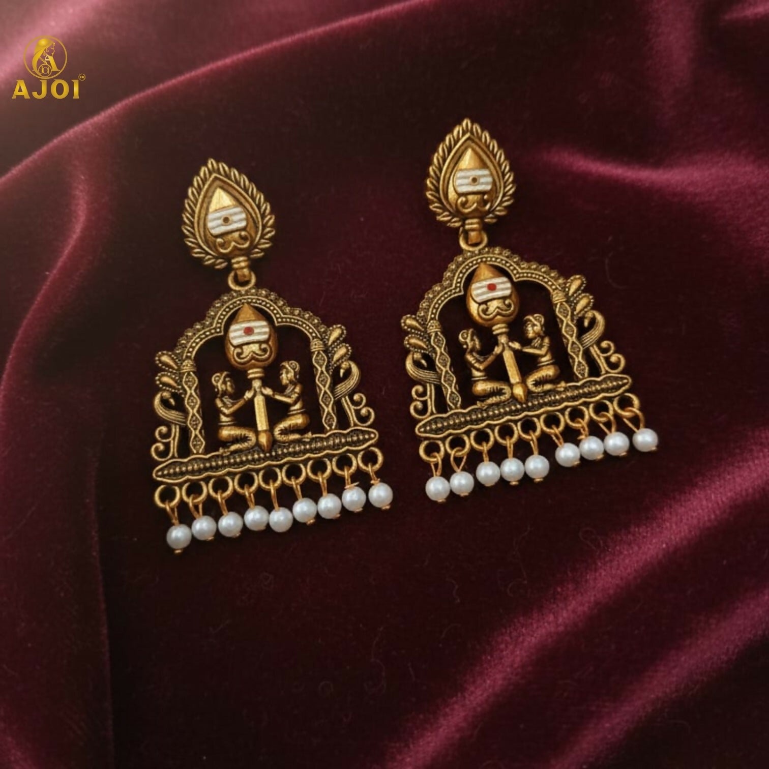 The intricate framework is enhanced with delicate texturing and finished with lustrous pearl danglers that add a graceful, feminine charm. Designed to make a statement, this heirloom-inspired pair perfectly complements bridal ensembles, festive attire, and rich ethnic wear.