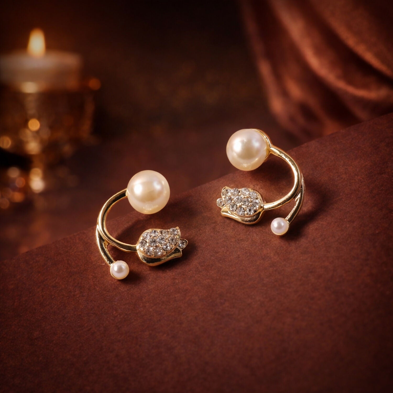 These stylish pearl and stone designer earrings feature a modern curved hoop-inspired design that adds a graceful touch to your look. The upper part is highlighted with a classic round pearl stud, while the lower curved section is beautifully detailed with a small pearl bead and a sparkling stone-studded charm. The elegant golden finish enhances the overall premium appearance, making the design look trendy yet sophisticated. Lightweight and comfortable to wear, these earrings are perfect for daily wear, office styling, parties, and festive occasions. A unique and fashionable accessory that complements both traditional and western outfits effortlessly.