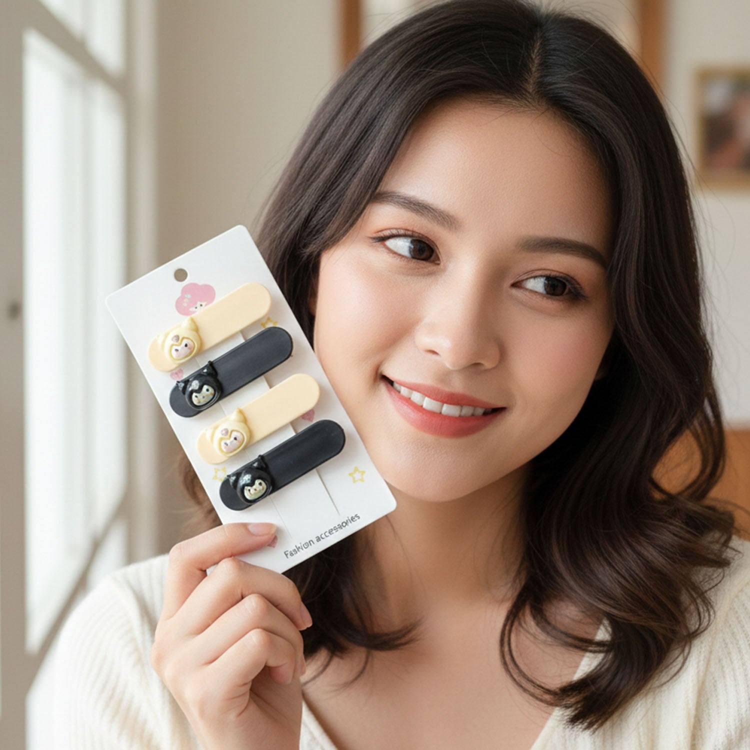 This adorable set of cartoon character decorative hair clips is designed to add a playful and stylish touch to everyday hairstyles. Each clip features a smooth snap-style mechanism that helps keep hair neatly in place while enhancing the look with a charming character accent. The balanced structure ensures comfortable wear without causing strain or discomfort during regular use. These clips are easy to use, lightweight, and suitable for creating neat side styles or securing front hair effortlessly. Perfect for daily styling, these clips blend functionality with fun design, making them a delightful addition to any hair accessory collection.