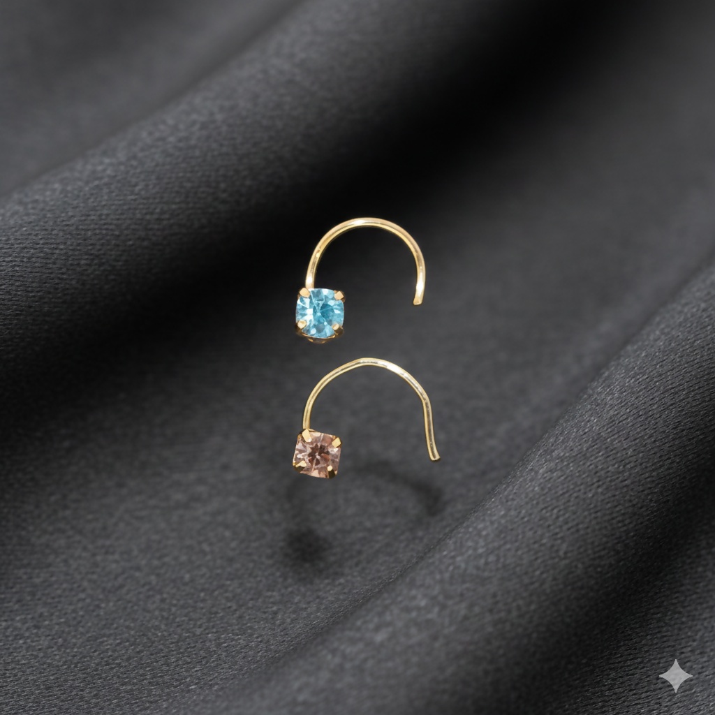 Add a touch of soft, romantic elegance to your look with this 2-piece crystal nose pin set. This set offers a perfect balance of classic brilliance and a gentle pop of color.