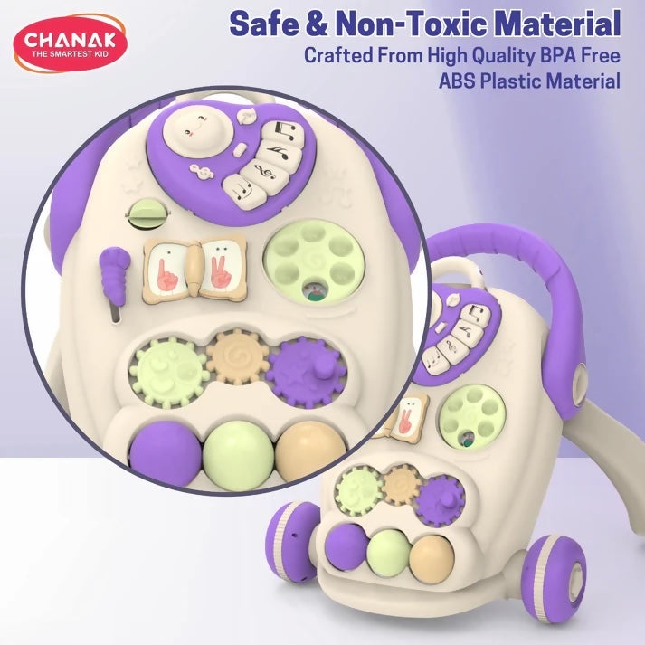 • SAFE & NON-TOXIC MATERIAL - Crafted from high-quality, BPA-free ABS plastic, this baby walker ensures complete safety with a smooth, burr-free surface and rounded edges. Fully tested and certified by ASTM standards, it offers long-lasting durability and a worry-free walking experience for your baby’s early developmental stages.