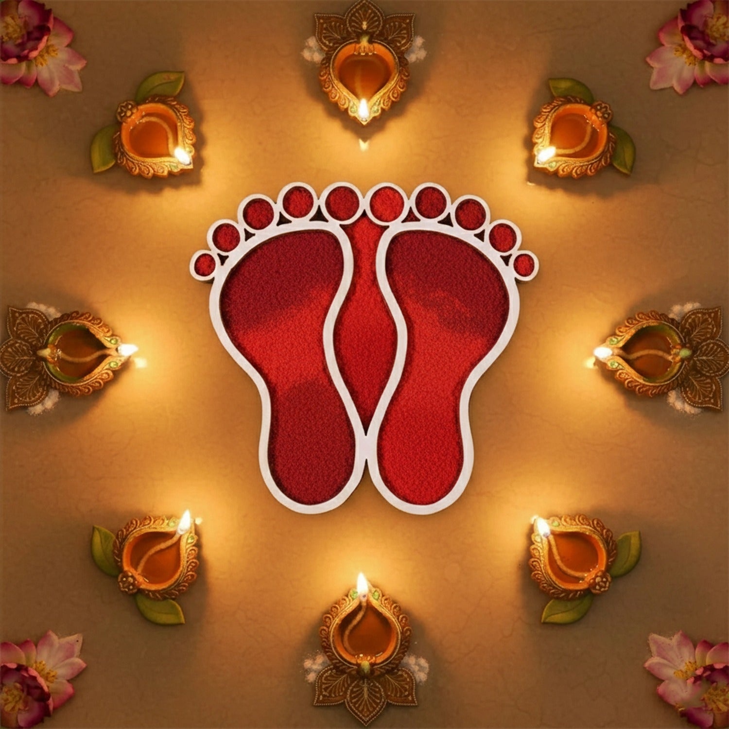 This Lakshmi Charan MDF design is used to make Maa Lakshmi’s feet using rangoli colours. Just place it, fill colours, lift, and you get a clean traditional feet look. Reusable and easy to keep for any occasion and on daily basis.