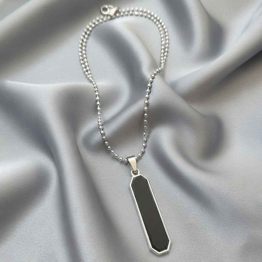 Add a touch of understated elegance to your everyday style with this sleek black rectangular pendant necklace. Featuring a smooth black inlay framed with a polished silver-toned border, this pendant offers a modern and minimalist appeal.