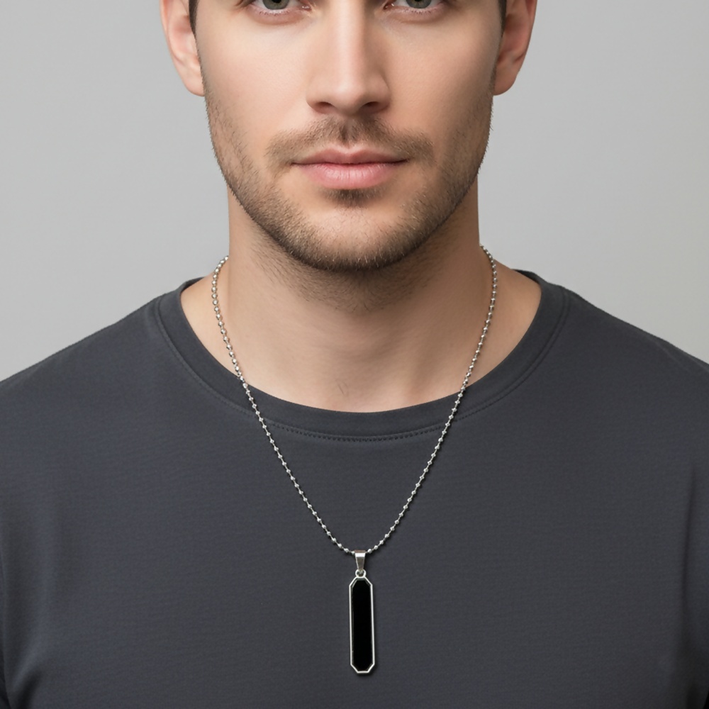 Minimalist Black Inlay Rectangular Pendant for Men