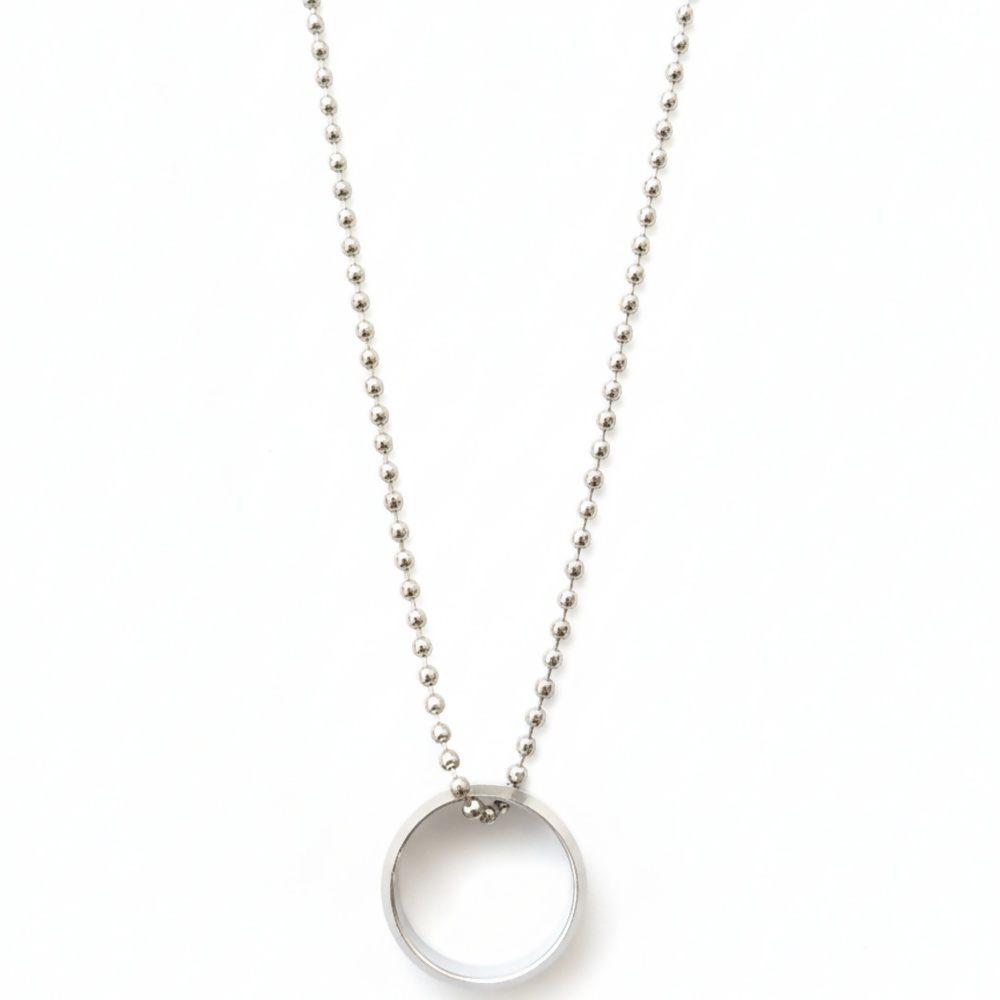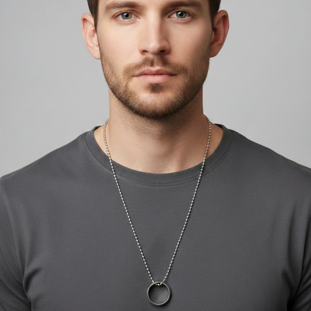 This elegant silver round shape pendant necklace features a sleek, modern design that adds a bold yet minimal touch to your look. Crafted with a smooth circular pendant and paired with a classic silver beaded chain, it offers a perfect balance of style and comfort.