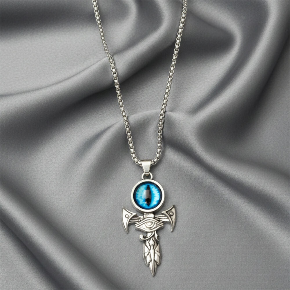 This Dragon Eye Pendant Chain features a bold and mystical design inspired by fantasy and mythical symbolism. The detailed dragon eye motif represents power, protection, and strength, making it a striking statement accessory. Crafted with a durable metal pendant and paired with a matching chain, it offers both style and comfort for daily wear.