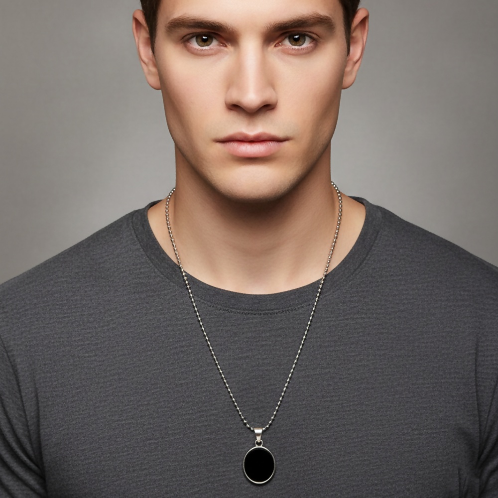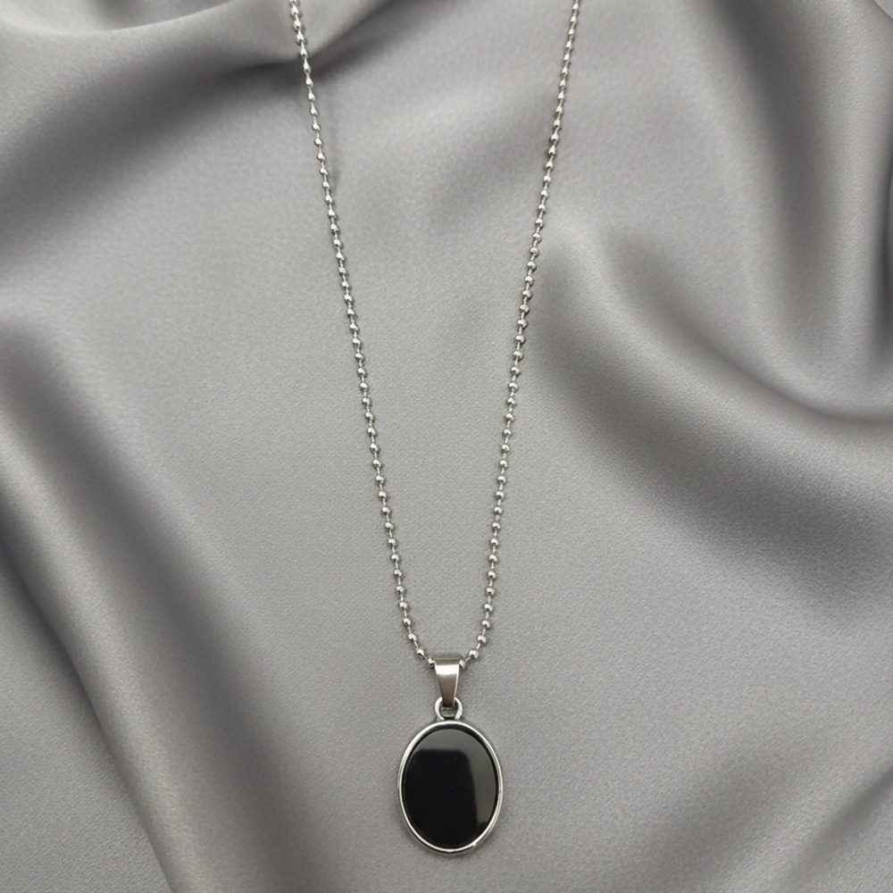 This elegant black round shape pendant necklace is a perfect blend of simplicity and sophistication. Crafted with a smooth black inlay and a sleek silver-toned border, the round pendant offers a timeless and refined look.