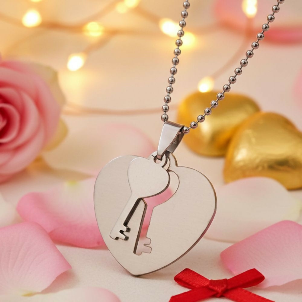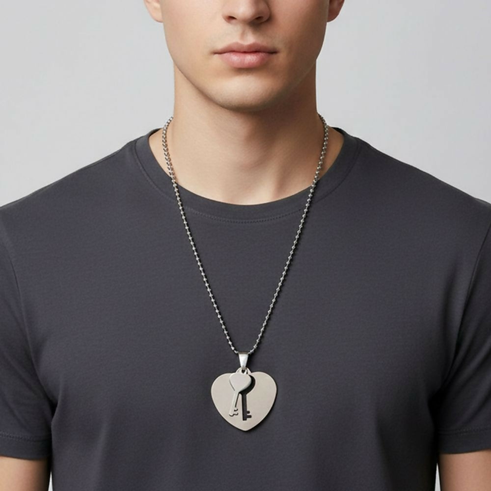 This Modern Heart and Key Pendant Necklace features a stylish and meaningful design that symbolizes love, trust, and connection. Crafted with a sleek finish, the heart and key motif adds a contemporary touch while maintaining an elegant appeal.