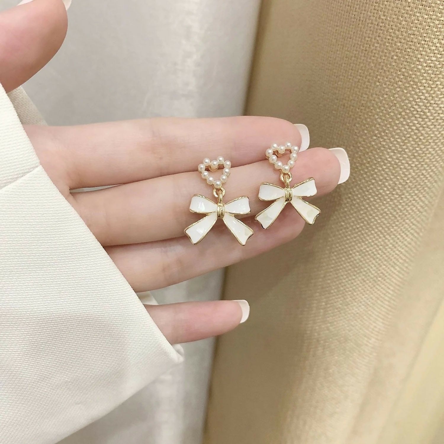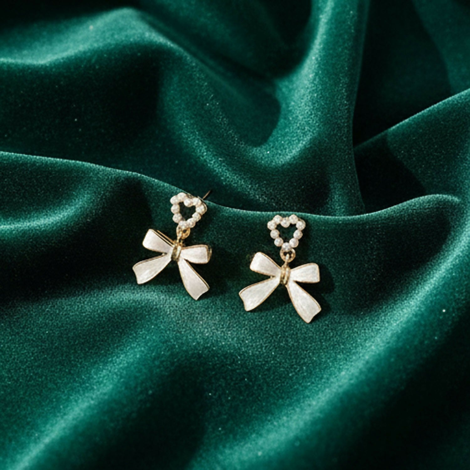 These Pearl Heart & Bow Earrings are a masterclass in delicate design. Featuring a unique combination of pearlescent textures and classic gold accents, they bring a sophisticated and vintage charm to any ensemble.
