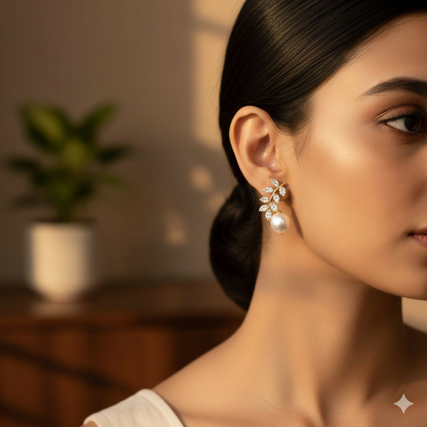 These Crystal Leaf & Pearl Climber Earrings are a stunning masterpiece designed to follow the natural curve of your ear. Combining the organic beauty of a botanical vine with the timeless elegance of a pearl, these earrings are the ultimate statement of grace.