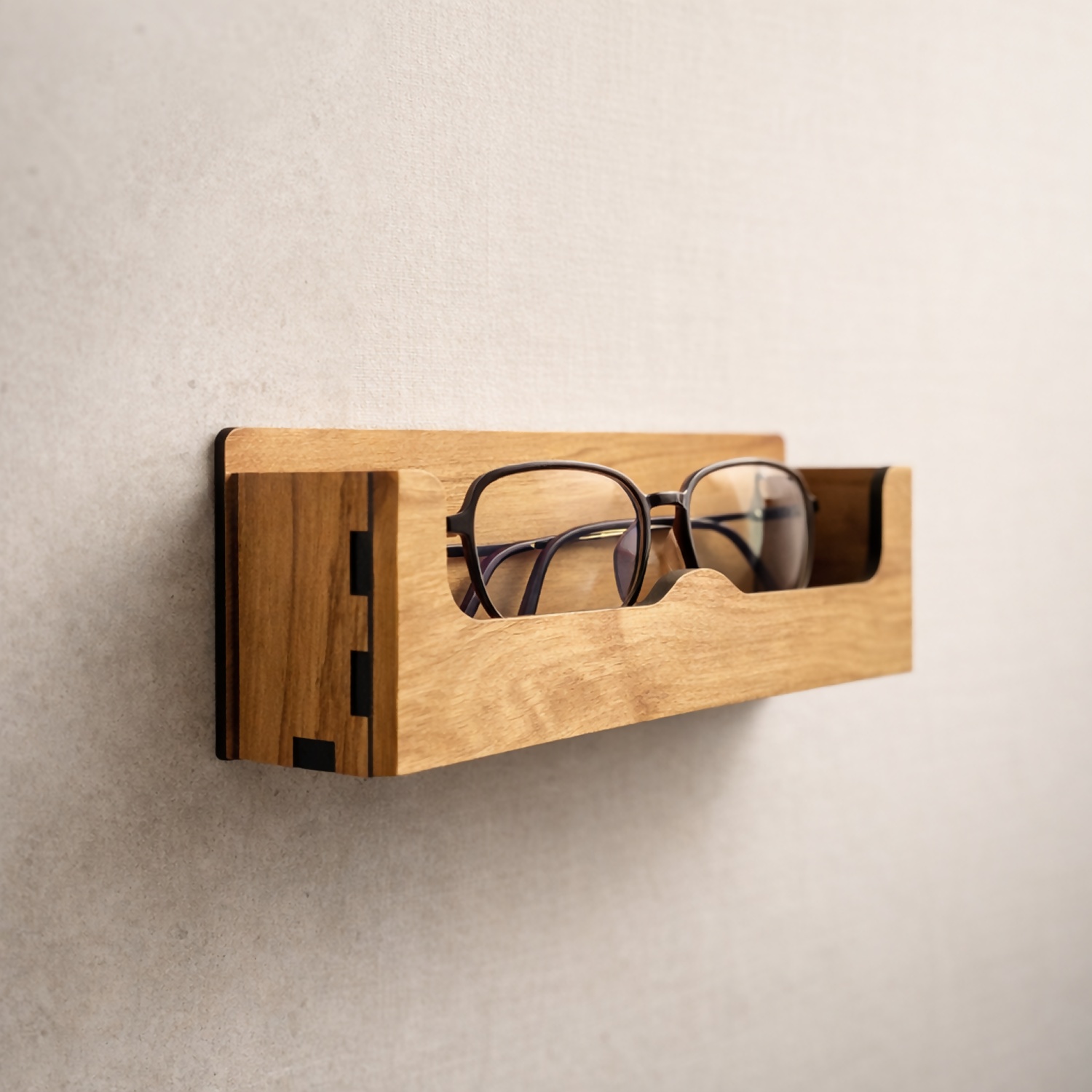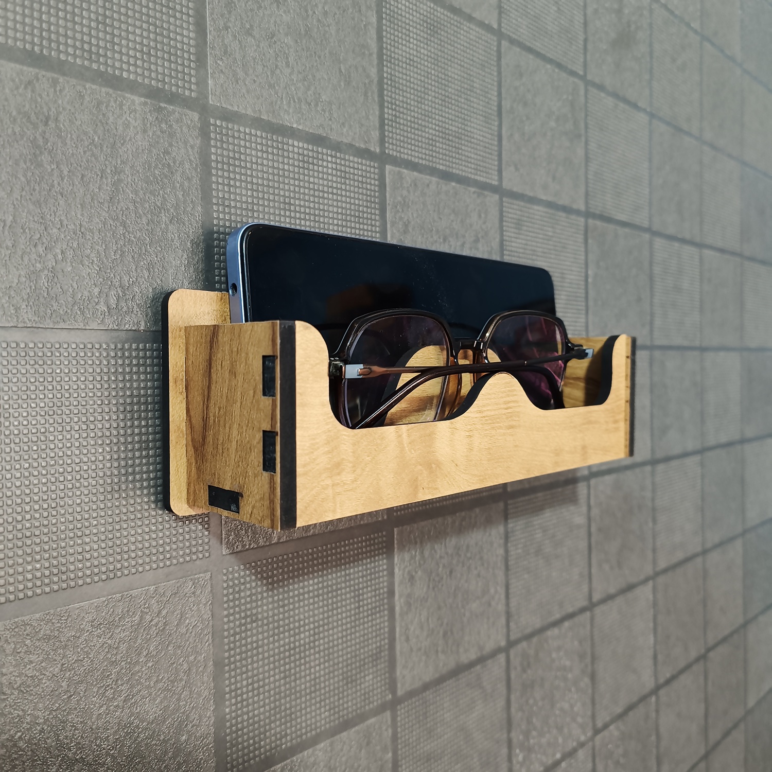 Keep your everyday essentials organized in style with this premium wooden wall-mounted sunglasses and mobile holder. Designed with a minimalist and modern aesthetic, this compact organizer is perfect for storing your eyeglasses, sunglasses, and smartphone in one elegant place.