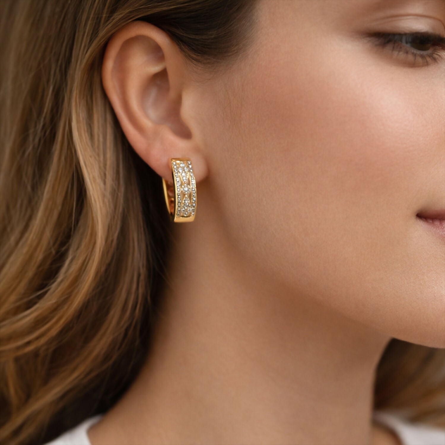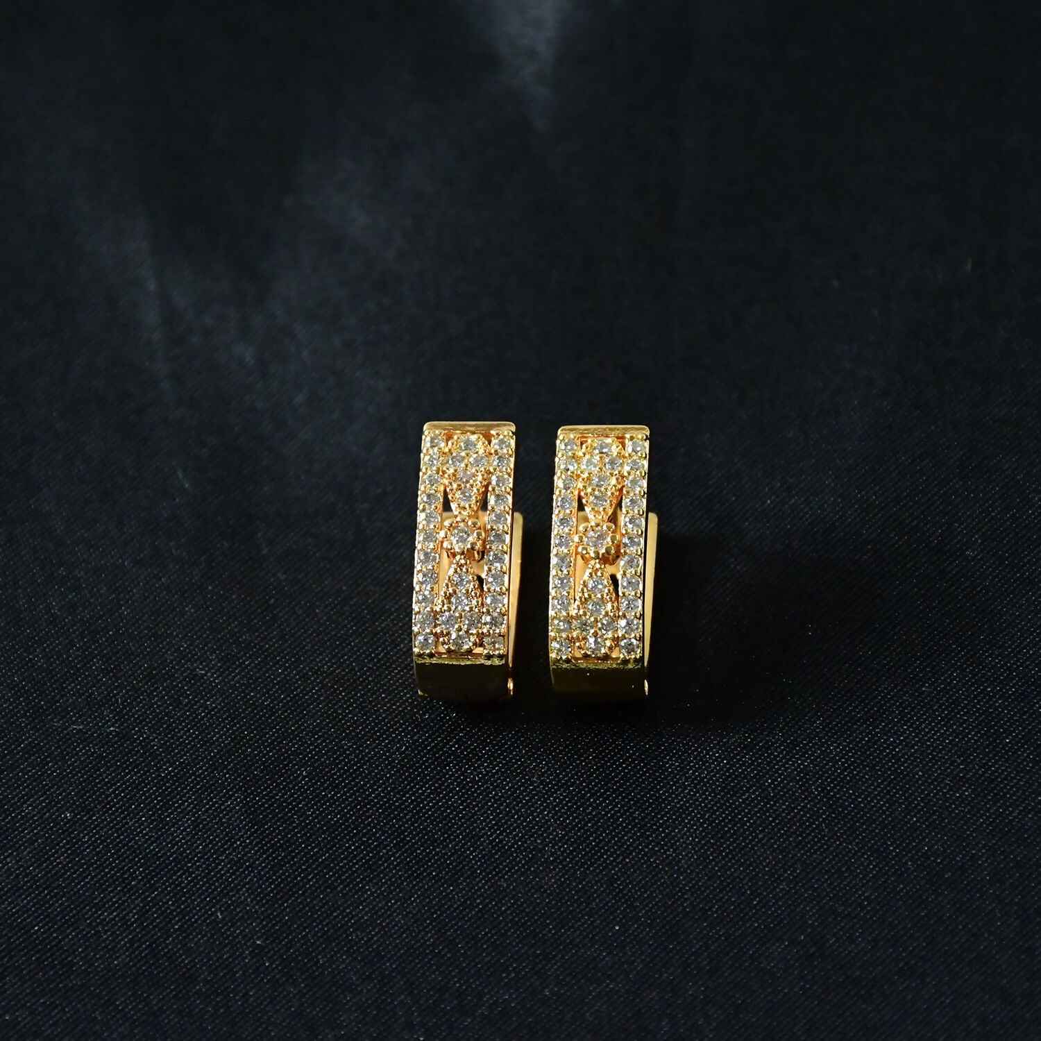 These gold plated cubic zirconia hoop earrings are designed to make a statement at parties and special occasions. Featuring shimmering CZ stones and a premium gold finish, they add a luxurious touch to both traditional and western outfits. Lightweight yet durable, these earrings are perfect for weddings, festivals, and gifting.