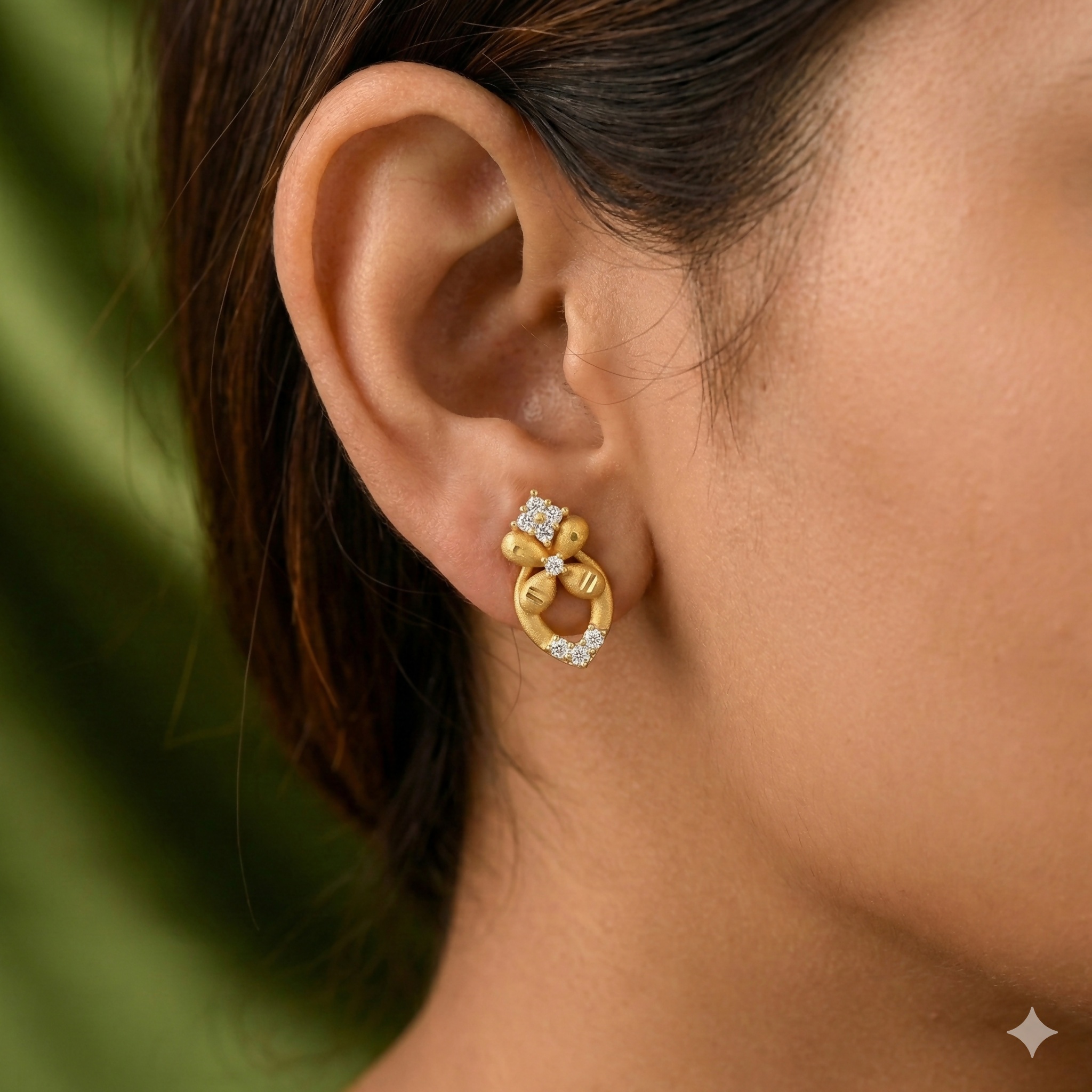The matte-finish gold provides a rich, luxurious glow, while the precision-set Cubic Zirconia stones add a brilliant sparkle that catches the light from every angle. Lightweight and comfortable for all-day wear, these earrings are the perfect statement piece for weddings, anniversaries, or special celebrations.