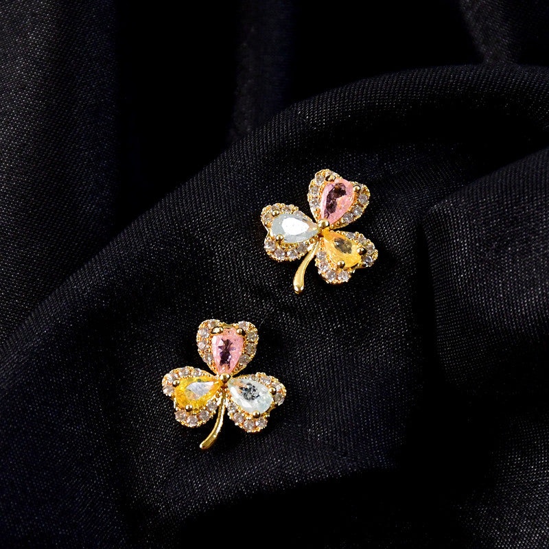 Multicolor Crystal Clover Stud Earrings with Gold Finish for Women